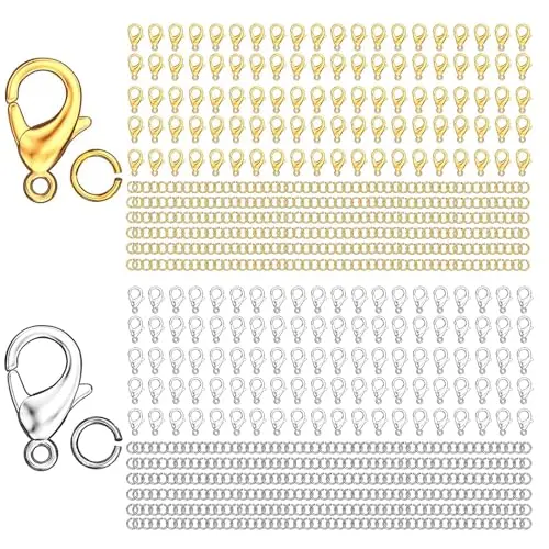 MKCYD 700Pcs Lobster Claw Clasps and Open Jump Rings Set, 14K Gold and Silver Necklace Clasps and Closures Lobster Parrot Trigger Clasp for Jewelry Making