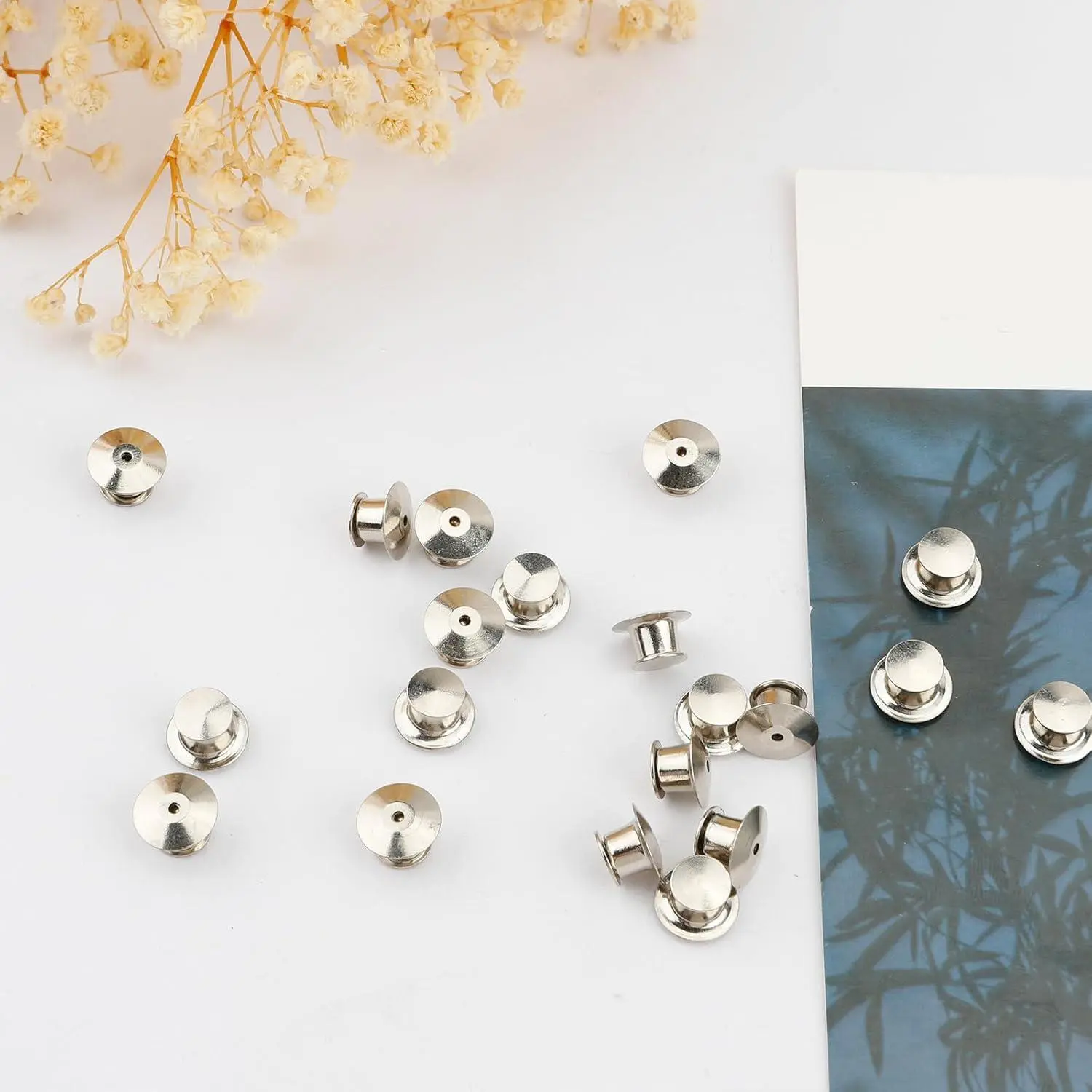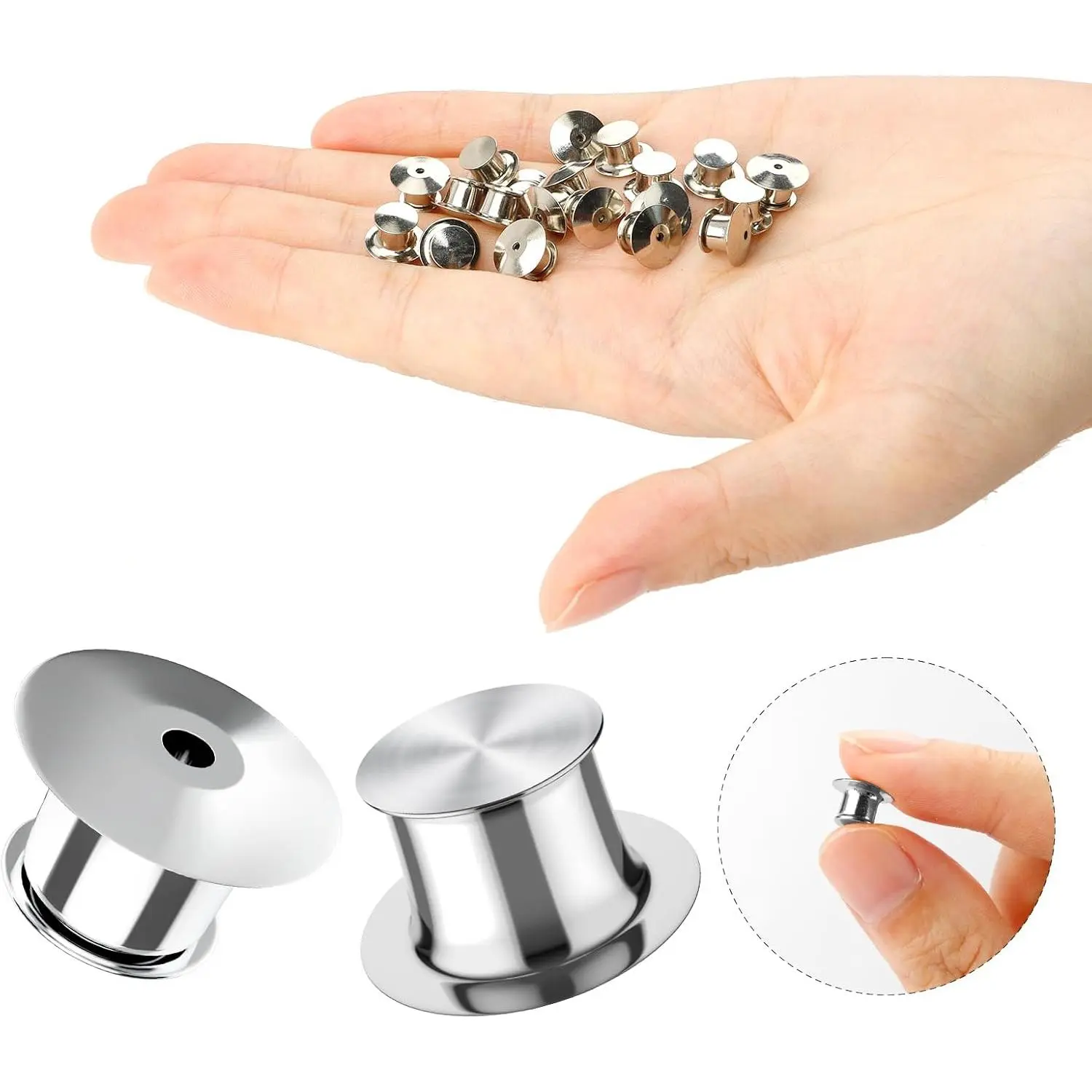 Metal Pin Backs, Locking Pin Backs, 20 Pieces Keepers Clasp Needle Back Lock Flat Head clamp Badge Fastener Tie Tack Lapel Brooch Enamel Lapel Pins Lock and DIY Crafts, Without Needle - Sliver