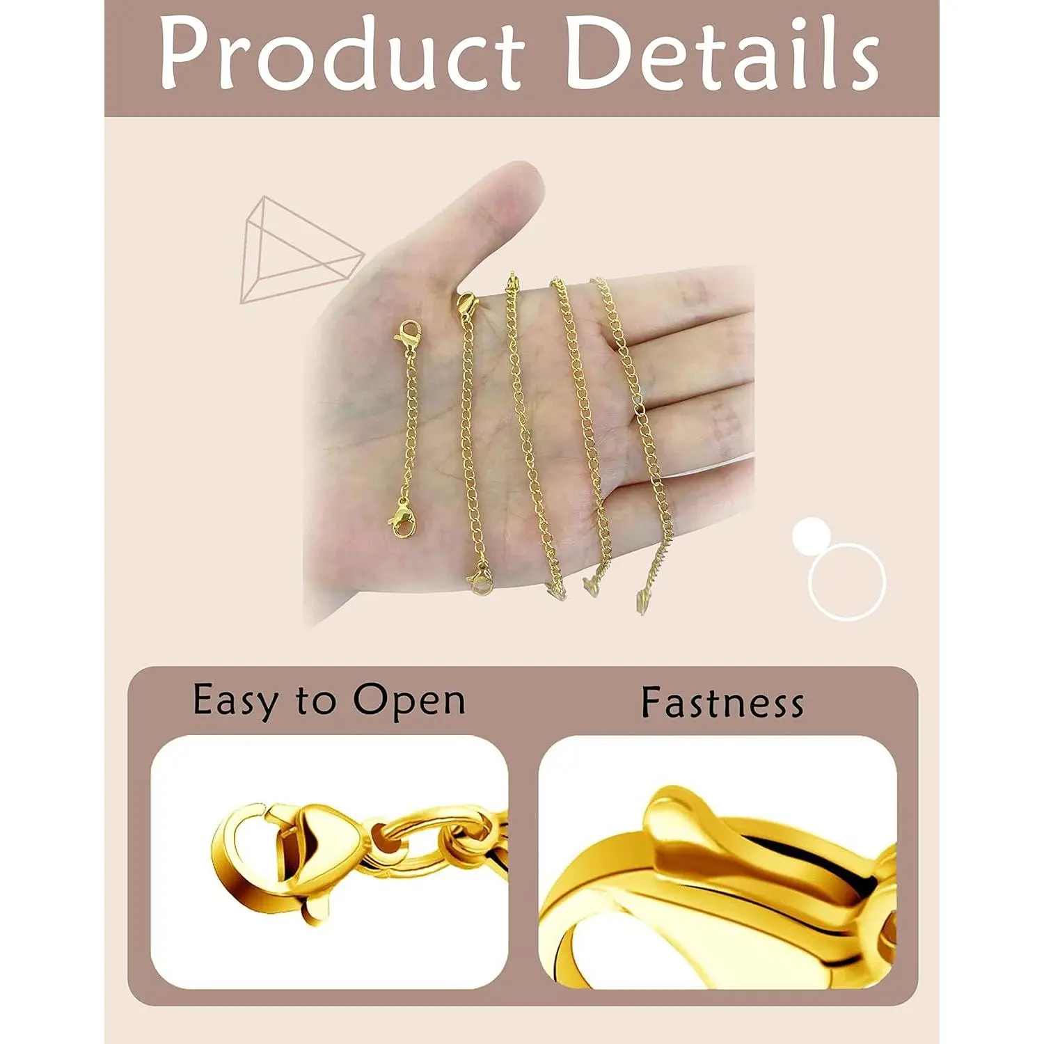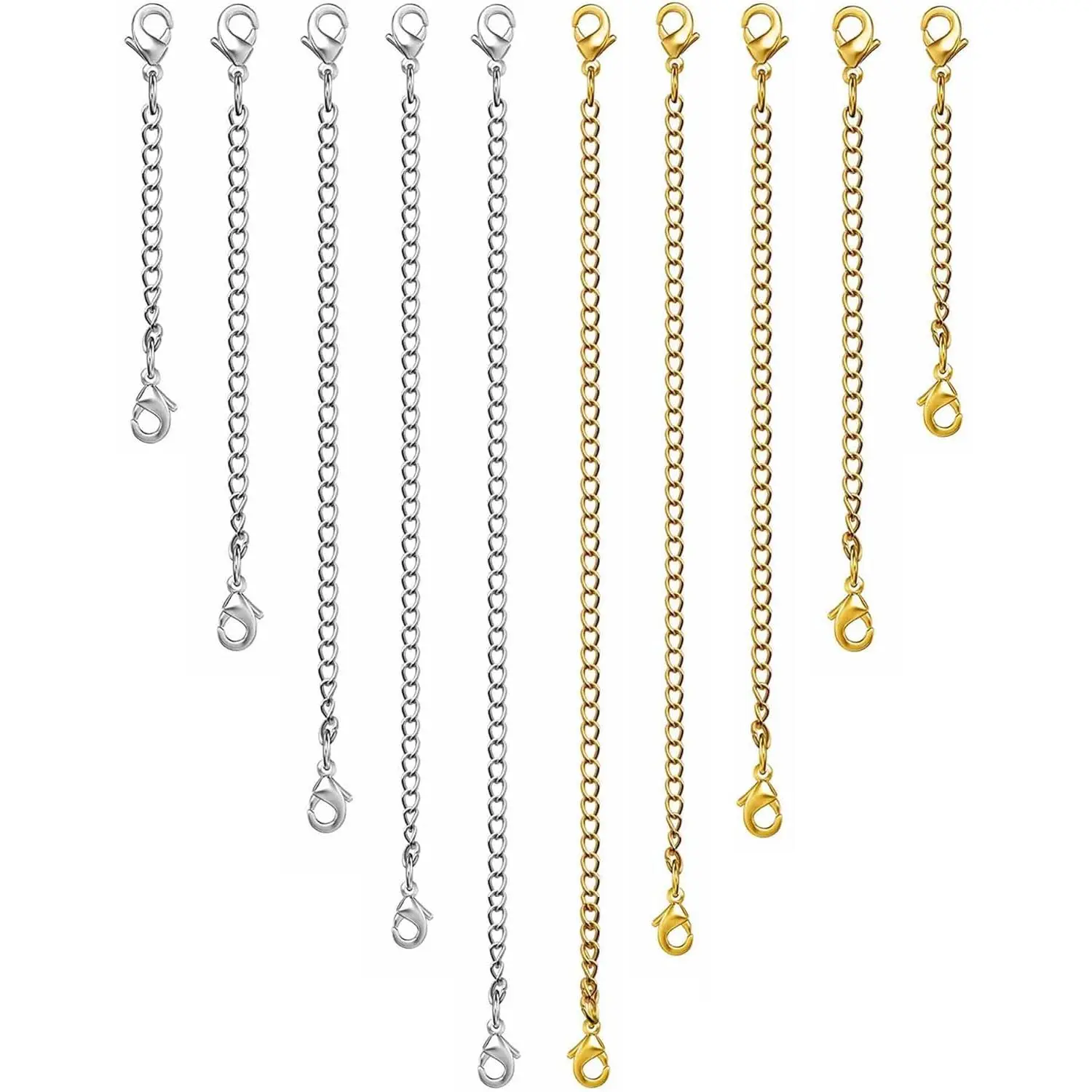 OHINGLT Necklace Extender 10Pcs Chain Extenders for Necklaces Bracelet, 14K Gold and Silver Plated Stainless Steel Extension Chain for Women Jewelry Making
