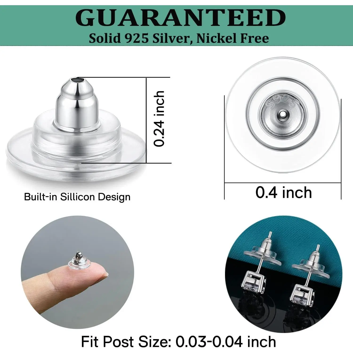 3-Pairs 925 Sterling Silver Earring Backs Replacements for Diamond Studs,14K White Gold Plated Hypoallergenic Secure Earring Backs (White Gold)