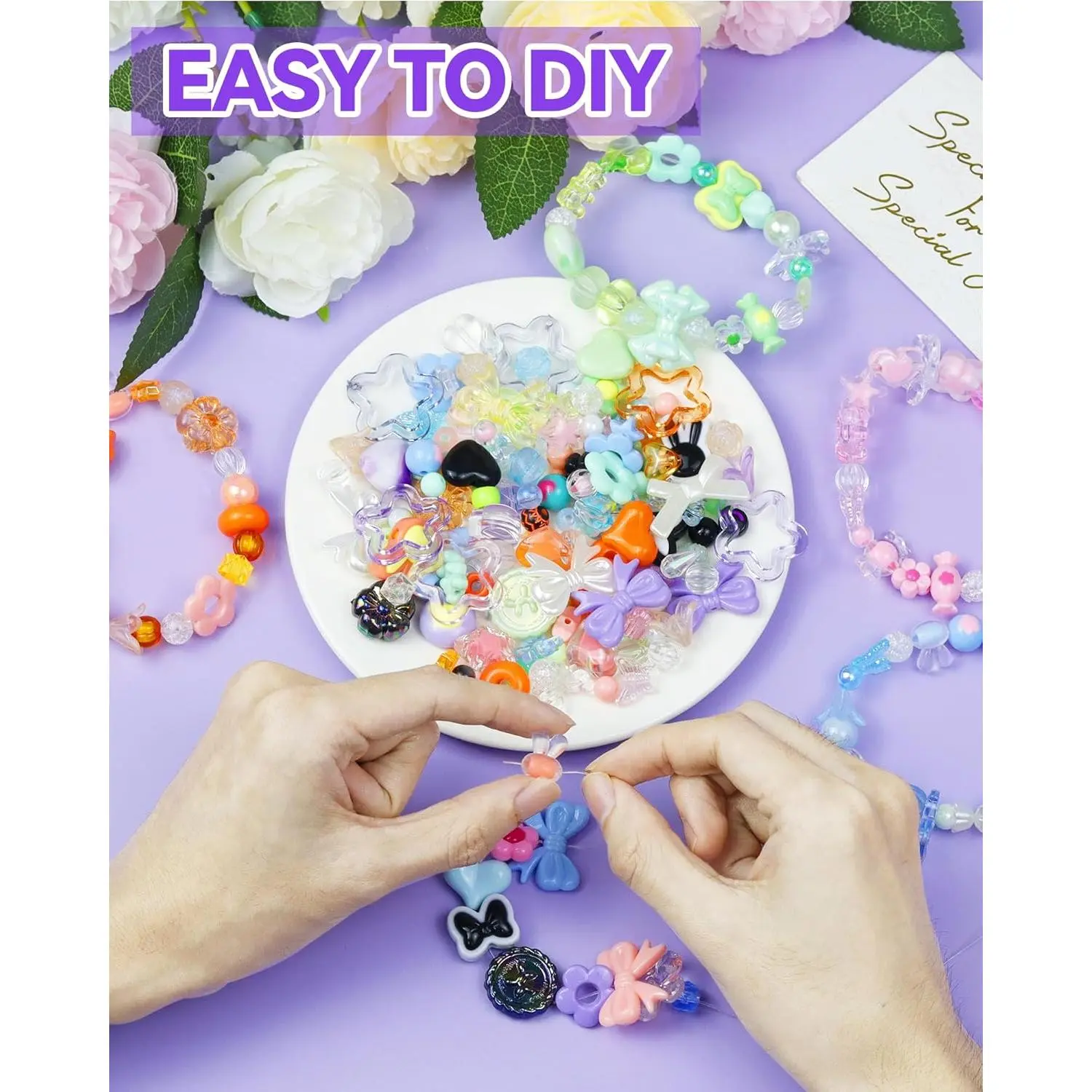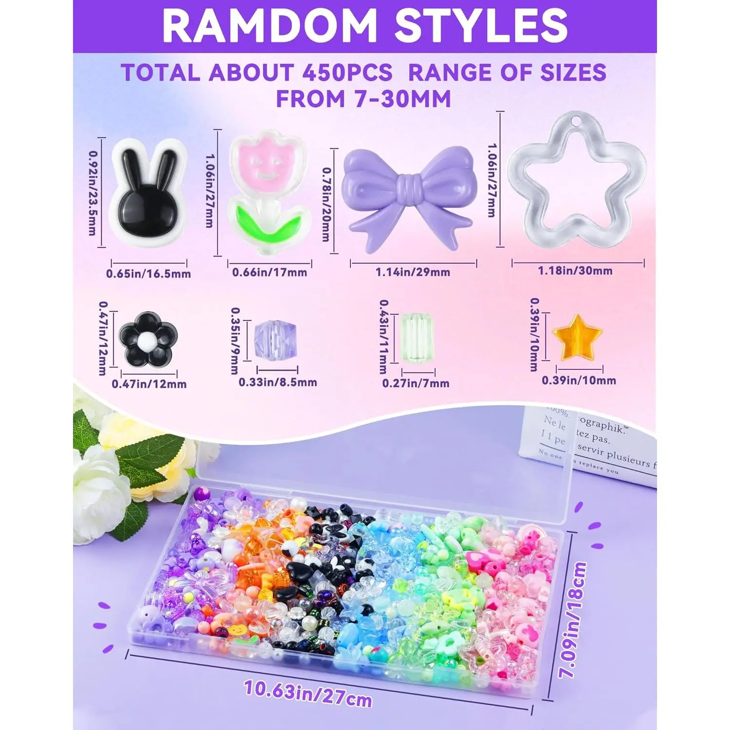 450PCS FIVEIZERO Assorted Acrylic Beads for Bracelet Making, Flower Star Heart Butterfly Candy Gummy Bear Kawaii Aesthetic Cute Beads for Jewelry Making, Keychains, Necklace, Phone Charms, DIY Crafts