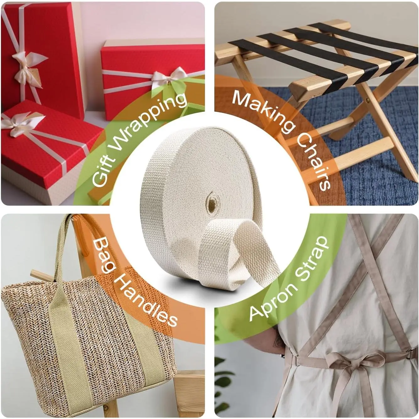QIANF 1 1/2 Inch Natural Heavy Cotton Webbing 10 Yards for Bags Backpack Straps Belts Tote Bag Handles Pet Collars Fabric Purse Making Crafts