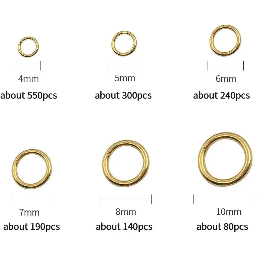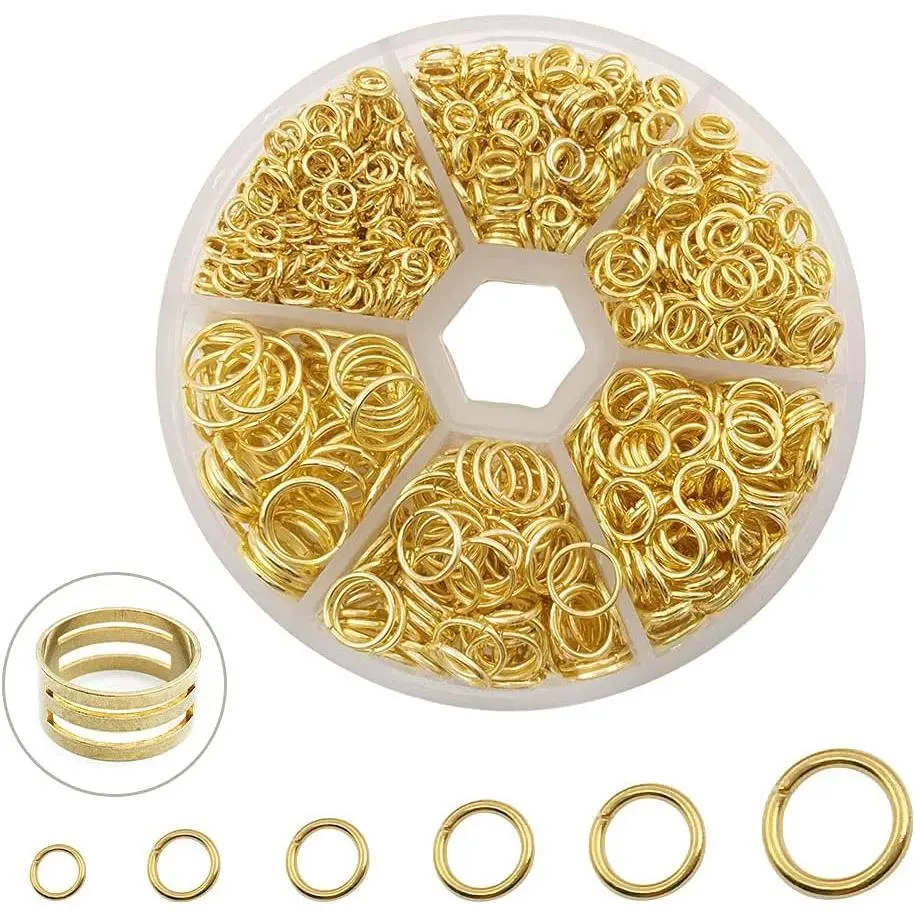 1500Pcs Mixed 6 Sizes Open Jump Rings,4mm 5mm 6mm 7mm 8mm 10mm Jump Ring Jewelry Keychain for Jewelry Making Accessories with 1Pcs Jump Ring Open/Close Tool and 1Pcs Storage Box (Gold)