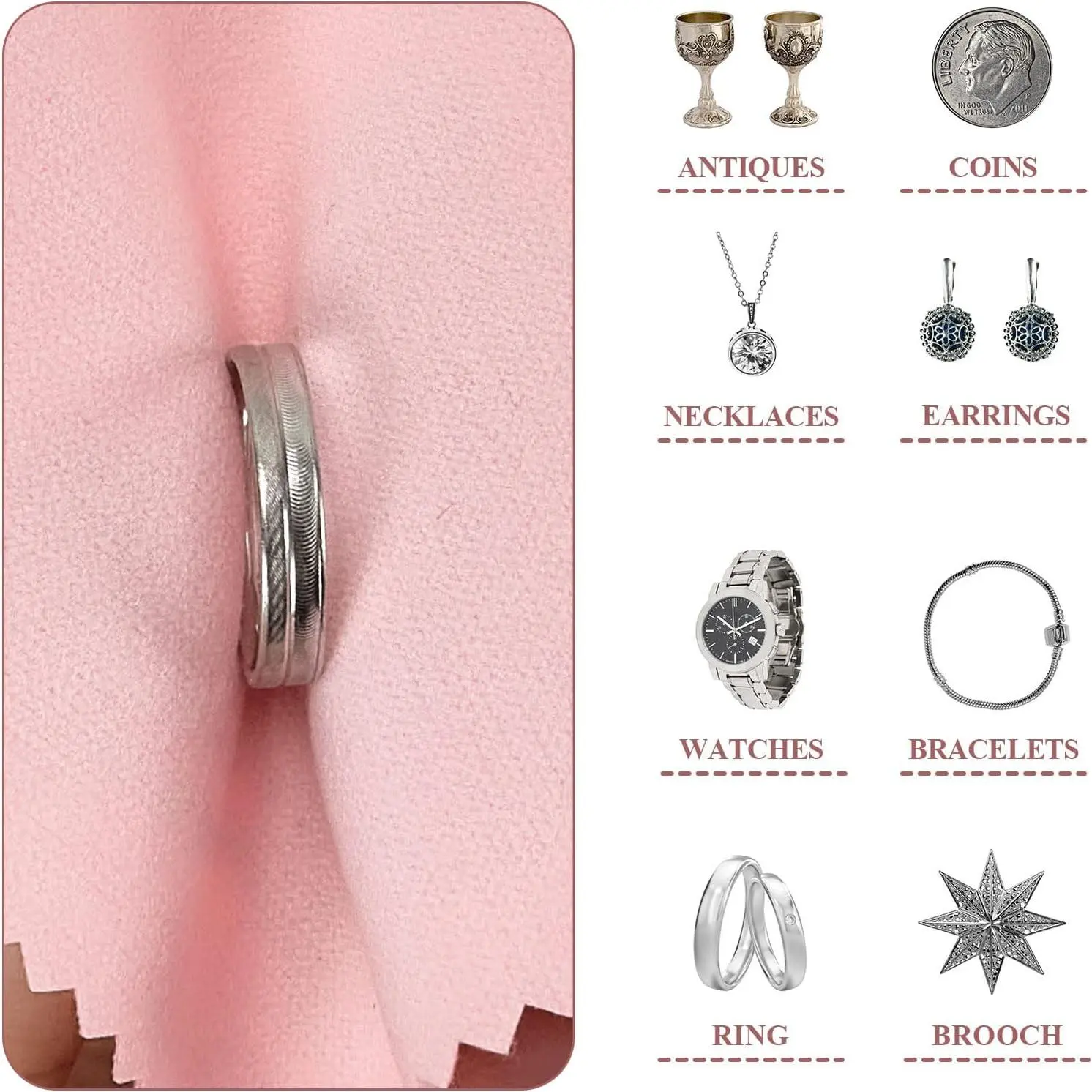 PINGMIC 120PCS Jewelry Cleaning Cloth, Professional Polishing Cloth Individually Wrapped, Pink Silver Polishing Cloth for Jewelry Sterling Silver Gold Platinum Watch Coins and More (3.15" x 3.15")