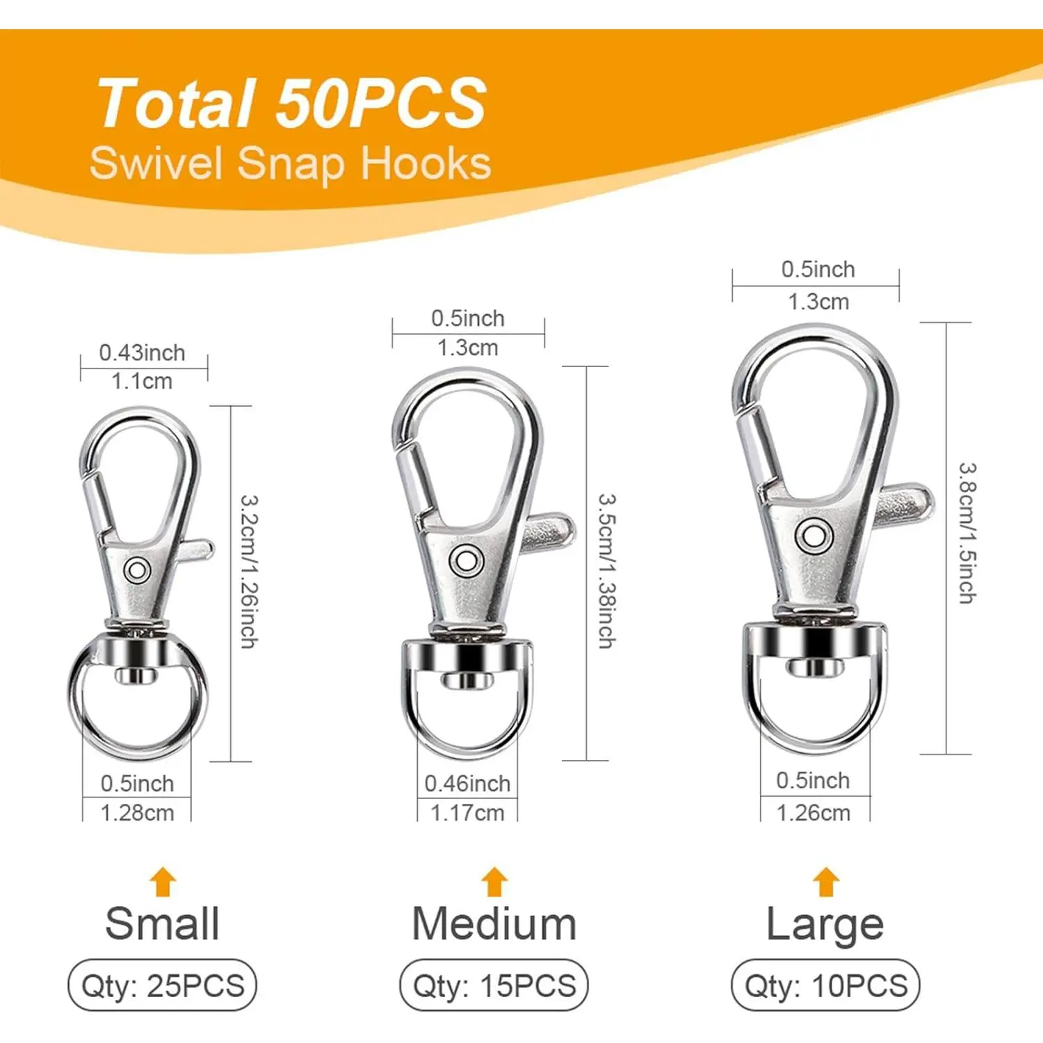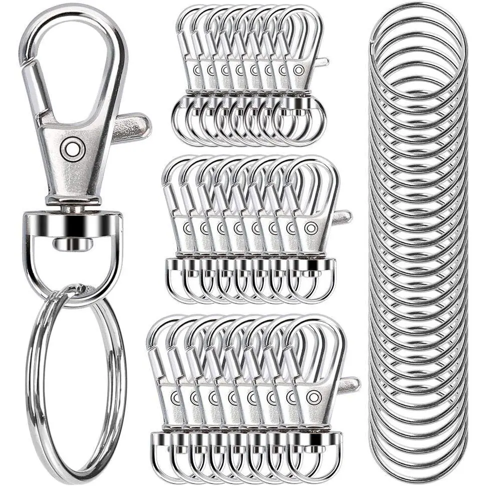 100PCS Swivel Snap Hooks with Key Rings, Premium Metal Swivel Lobster Claw Clasps Assorted Sizes (Large, Medium, Small) for Keychain Clip Lanyard, Jewelry Making, Crafts, Silver
