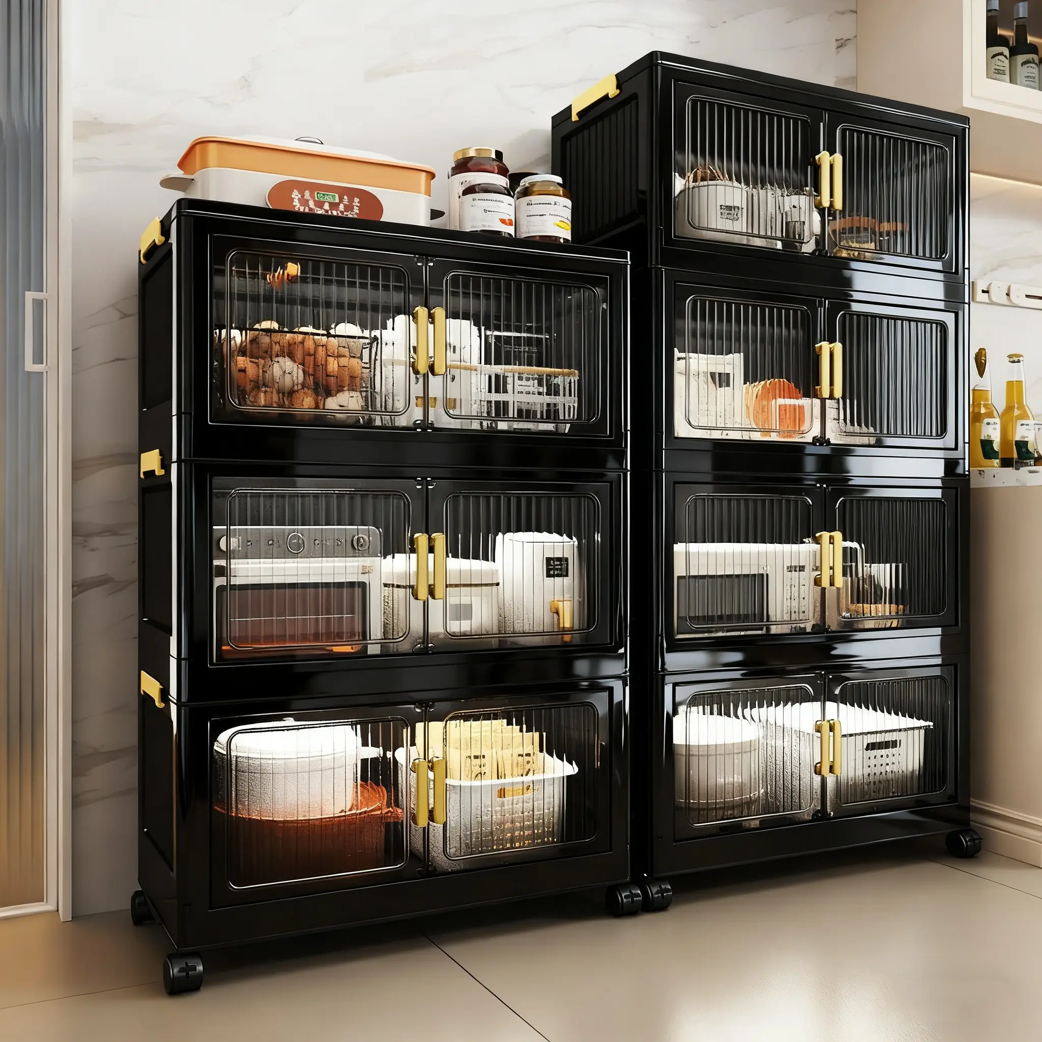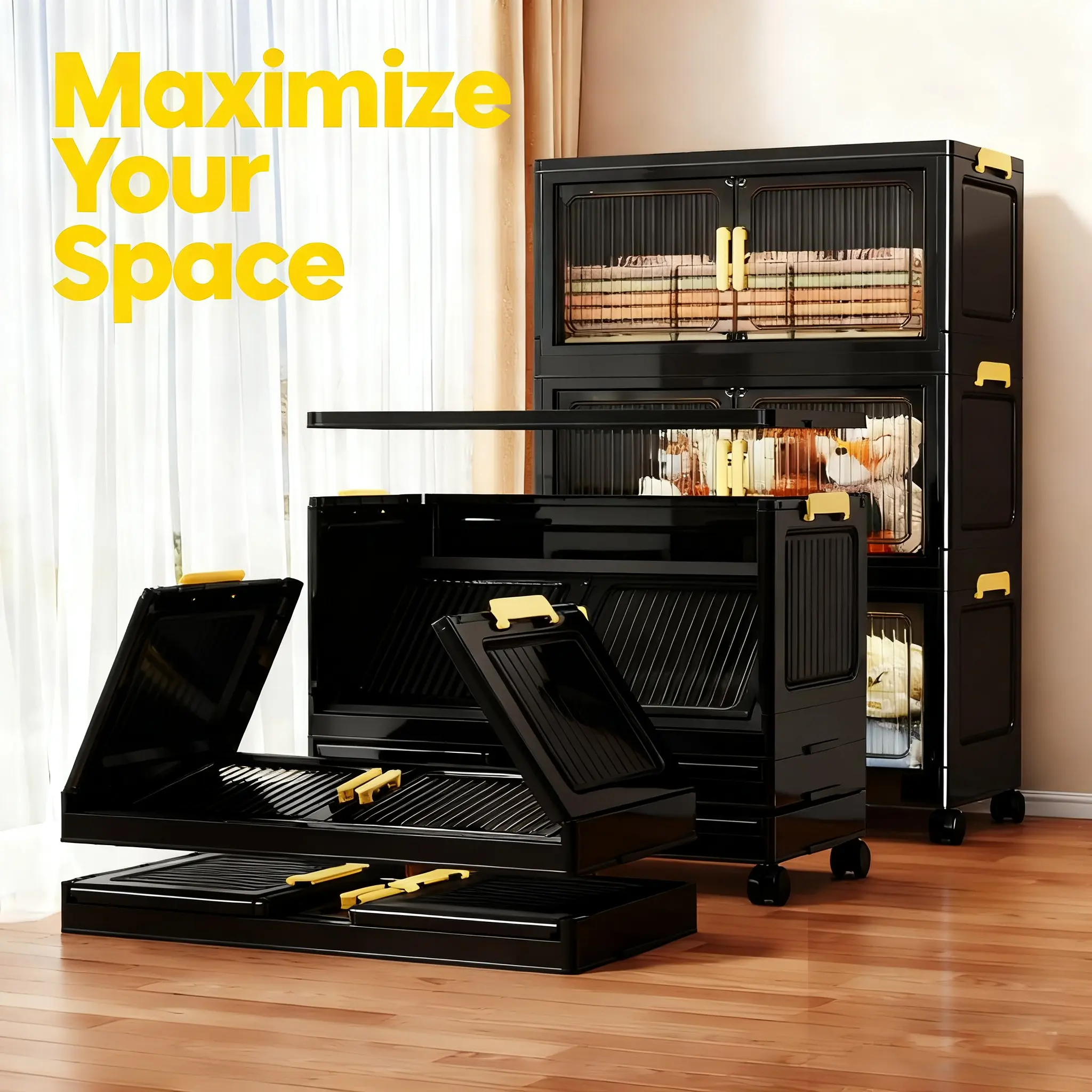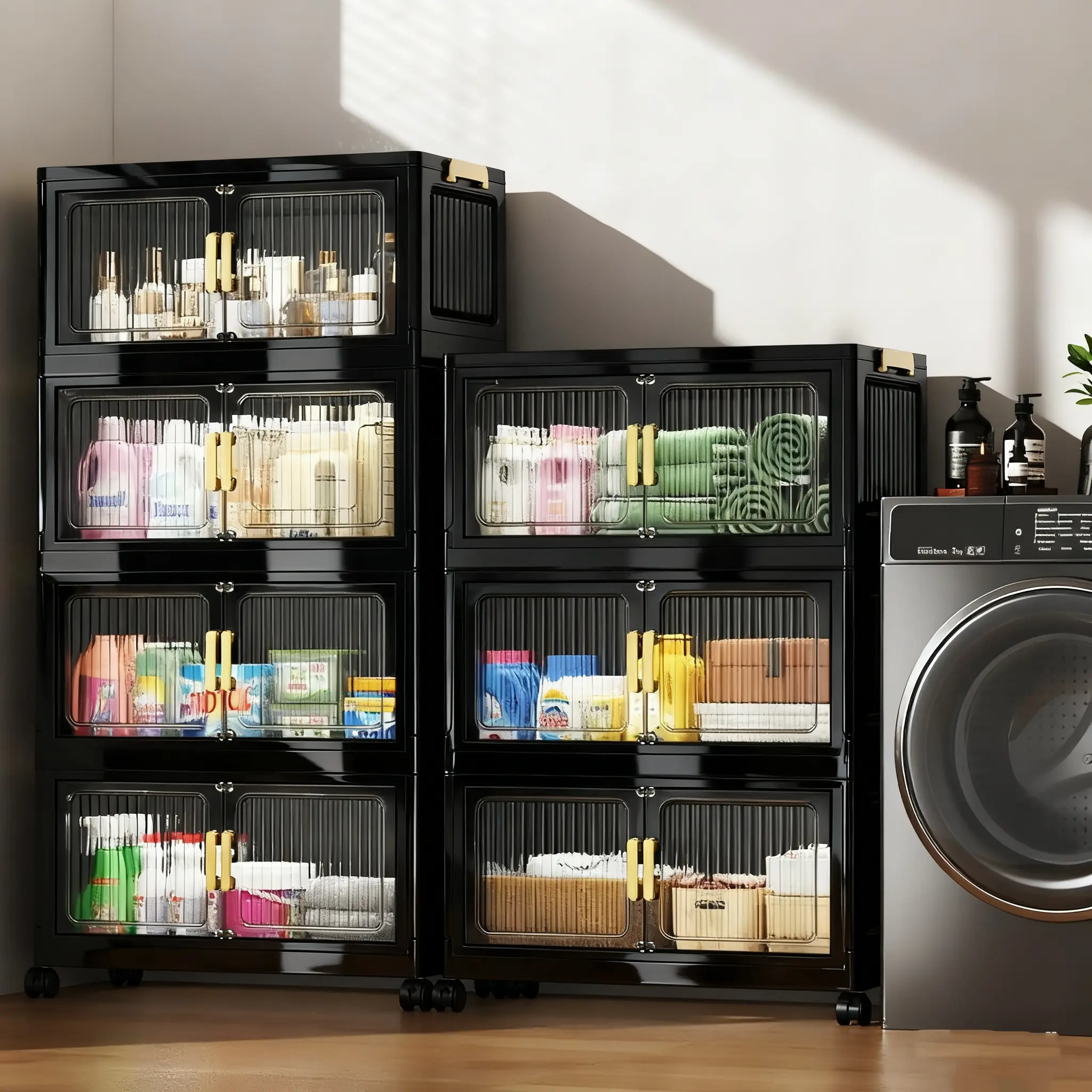 Portable, foldable cabinet with lid; stackable plastic storage bins; large-capacity storage cabinet with casters; multifunctional upright storage cabinet; easy to assemble; ideal for organizing and storing items in the living room, bathroom, and kitchen