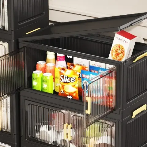 ·This cabinet is portable and foldable, making it easy to store and move. It features a lid for added convenience. Perfect for organizing items in various rooms like the living room, bathroom, and kitchen.
