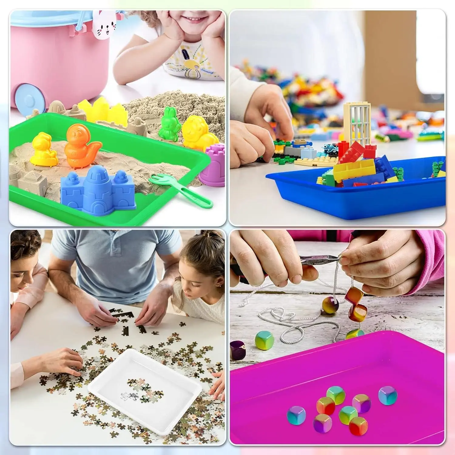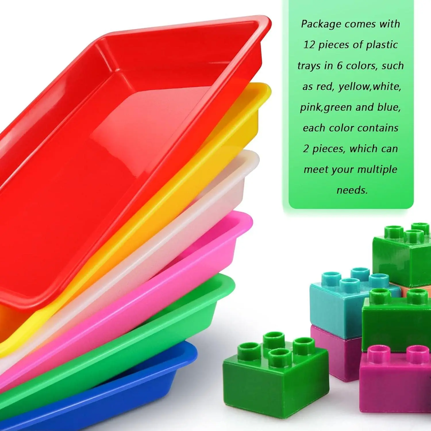 Bercoor 12 Pack Plastic Art Trays, Activity Crafts Serving Organizer Tray for Kids School Classroom DIY Projects Supply, Painting, Jewelry, Beads, 6 Colors