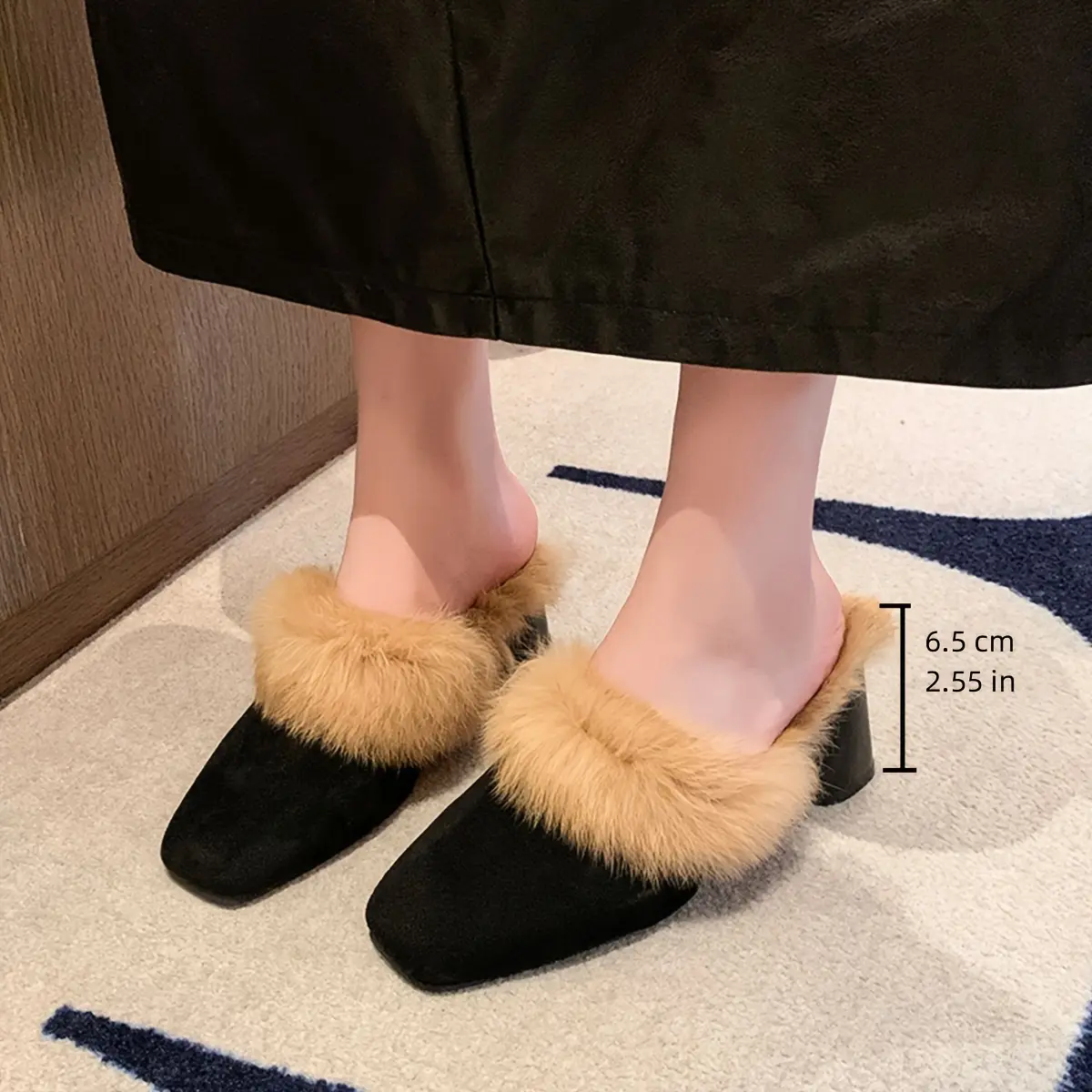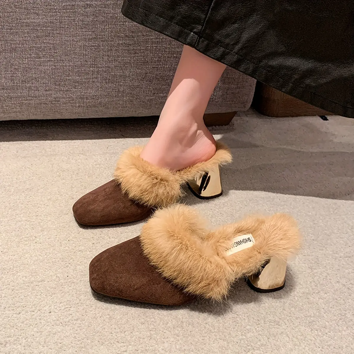 5. Moccasin Women 2024 New Autumn And Winter Outdoor Half with Dress Versatile High Heels One Slip-On Chunky Heel Elegant Women Shoes