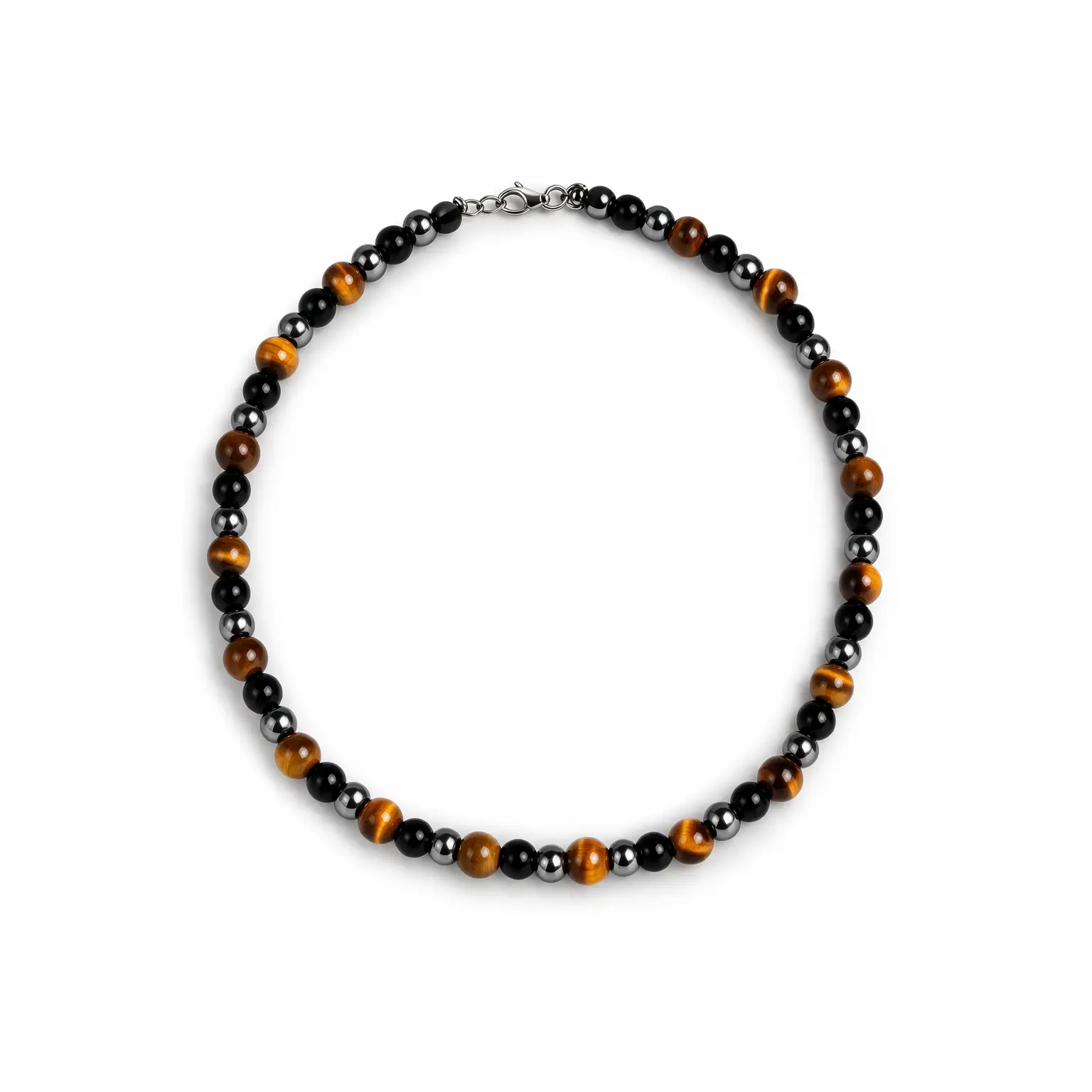 This powerful beaded necklace combines Tiger’s Eye, Black Onyx, and Hematite, three stones known for grounding, protection, and inner strength. Designed to balance energy while keeping you spiritually protected, it makes a perfect everyday piece for both style and spiritual support.
