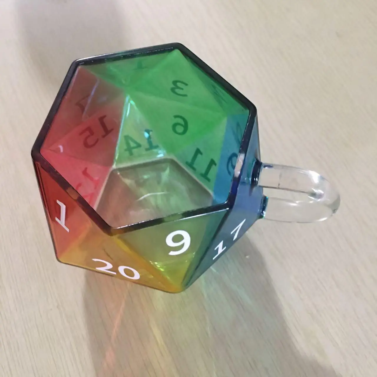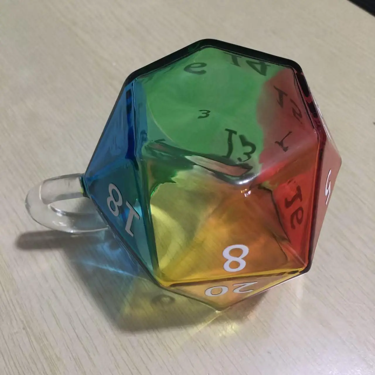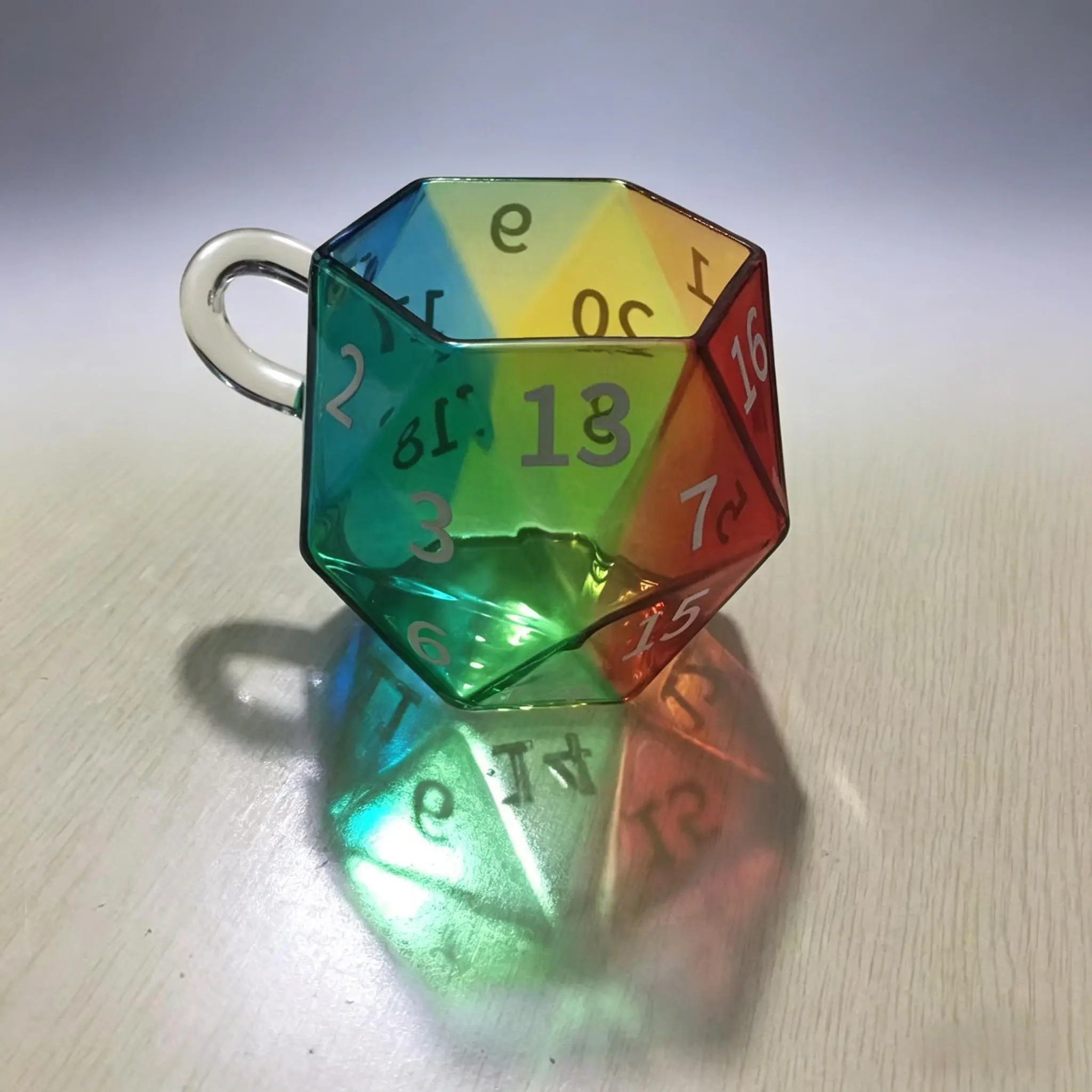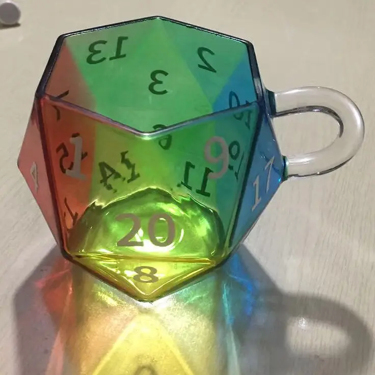D20 Dice Glass Cup | Perfect for Game Nights, Birthdays & DnD Parties . 2026 Unique Rainbow Dice Mug, Multi-Sided Coffee Cup, Vibrant Rainbow Colors, Perfect for Gamers and Collectors, Creative Gift Idea