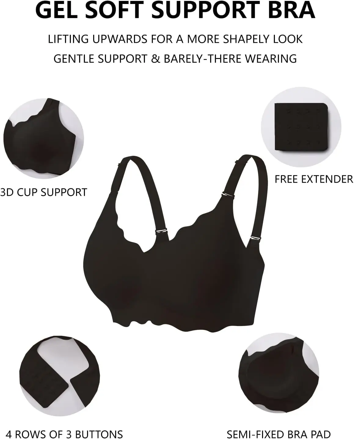 ·【Soft Supportive bras with Jelly Strip】Experience super support with our wireless push-up bra, featuring an innovative "W" shaped jelly strip that wraps around each breast for 360°natural-looking lift and shaping. This unique 3D support technology enhances your curves without underwire, offering a perky, rounded silhouette with anti-sagging confidence.