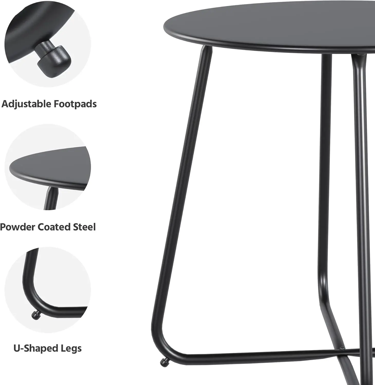 ·LAUSAINT HOME 18" Outdoor Side Table, Set of 2 Small Round Patio Table with Adjustable Footpads, Powder Coated Steel Coffee Table for Patio, Balcony, Porch and Garden, Black