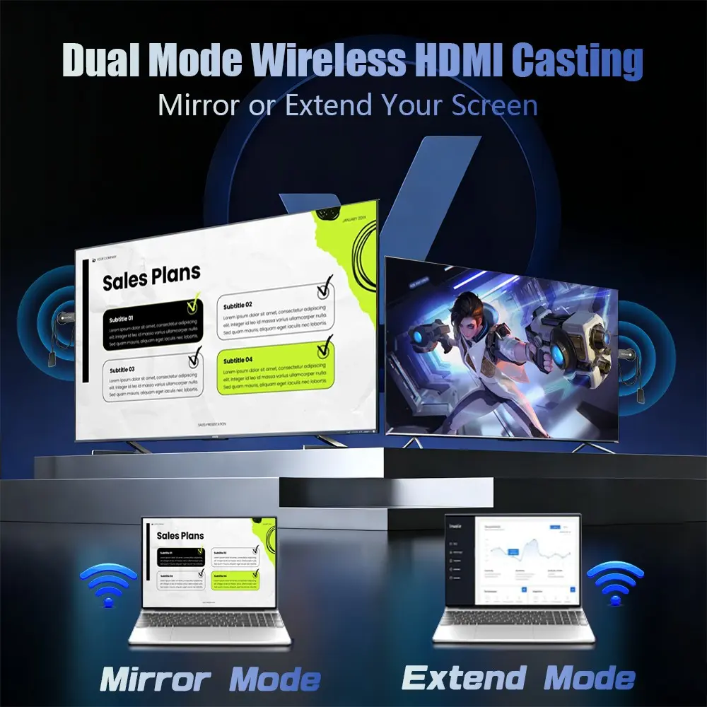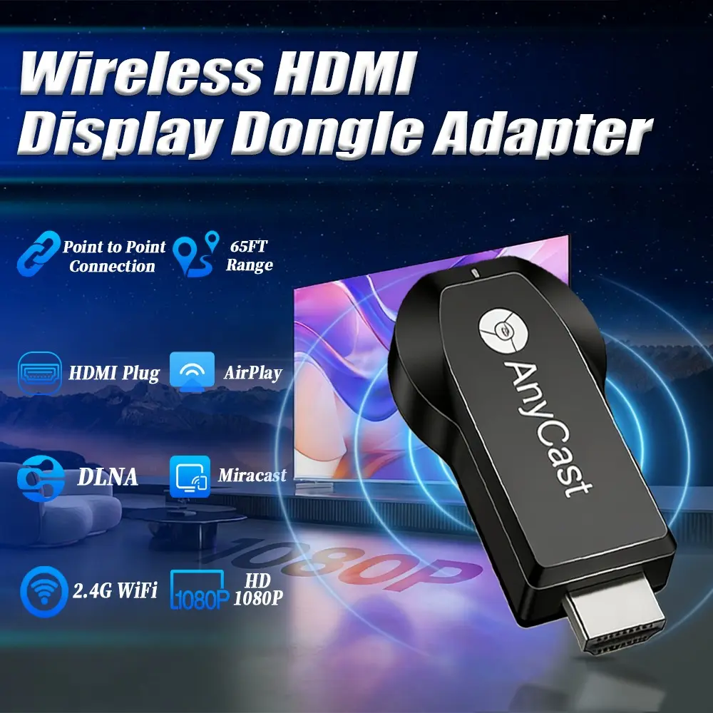 Wireless HDMI Display Adapter,2.4G WiFi Screen Cast Mirroring,Media Streaming Dongle Receiver for Phone/PC/Tablet to TV Box/Projector/PC