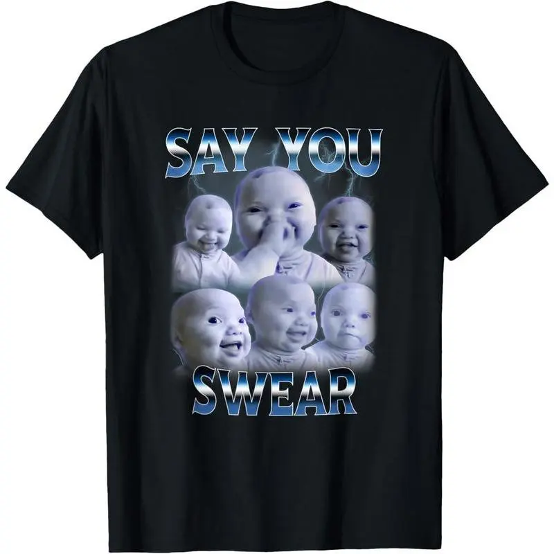 5. 100% Cotton Say You Swear Ai Niche Baby Holding Back Laugh Genz Meme T-Shirt