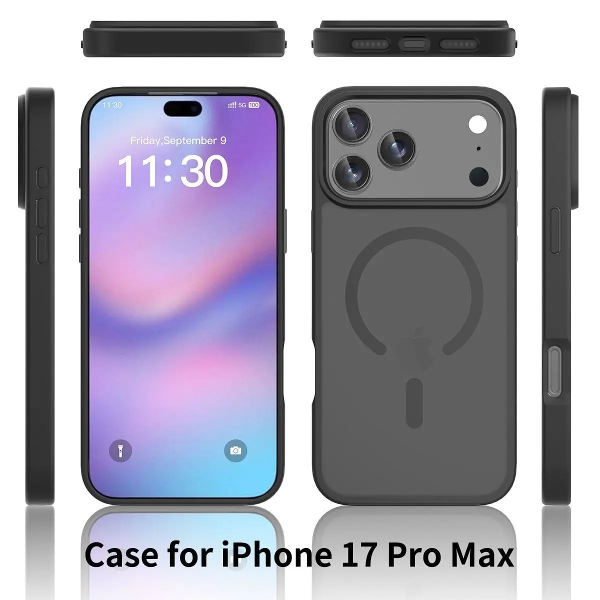 High-end matte skin-touch black mobile phone case suitable for iPhone17Promax 16Promax 15Plus 14Pro 13 12 Pro Max Plus supports magnetic suction wireless charging matte translucent anti-shock and anti-fall Apple mobile phone case