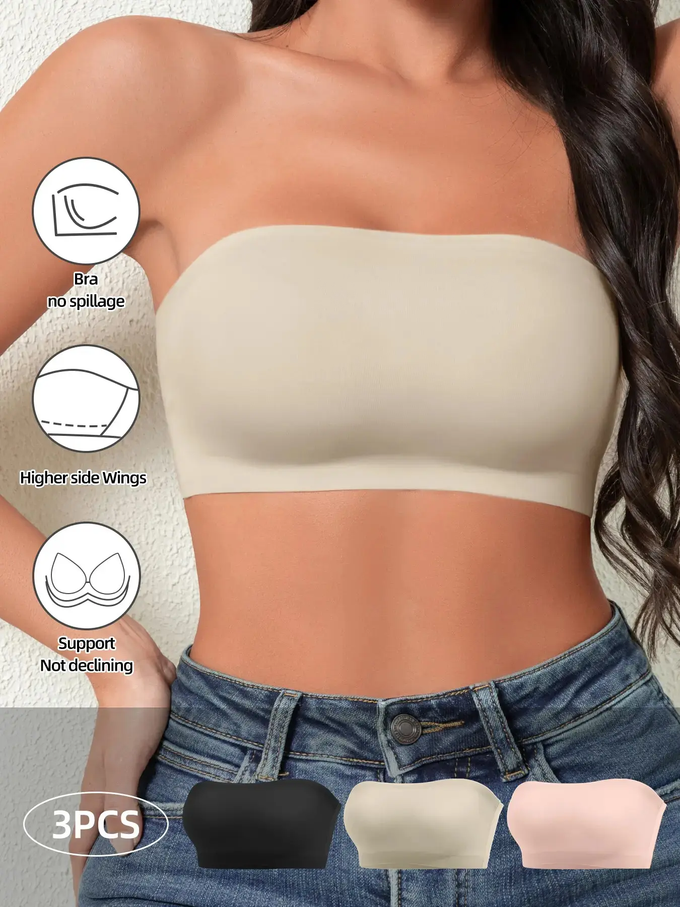 Women's Strapless Bralette, No Steel Cup Design, Soft Fit Daily Wear, Plain Pattern, Buckleless Style, All Season Comfort