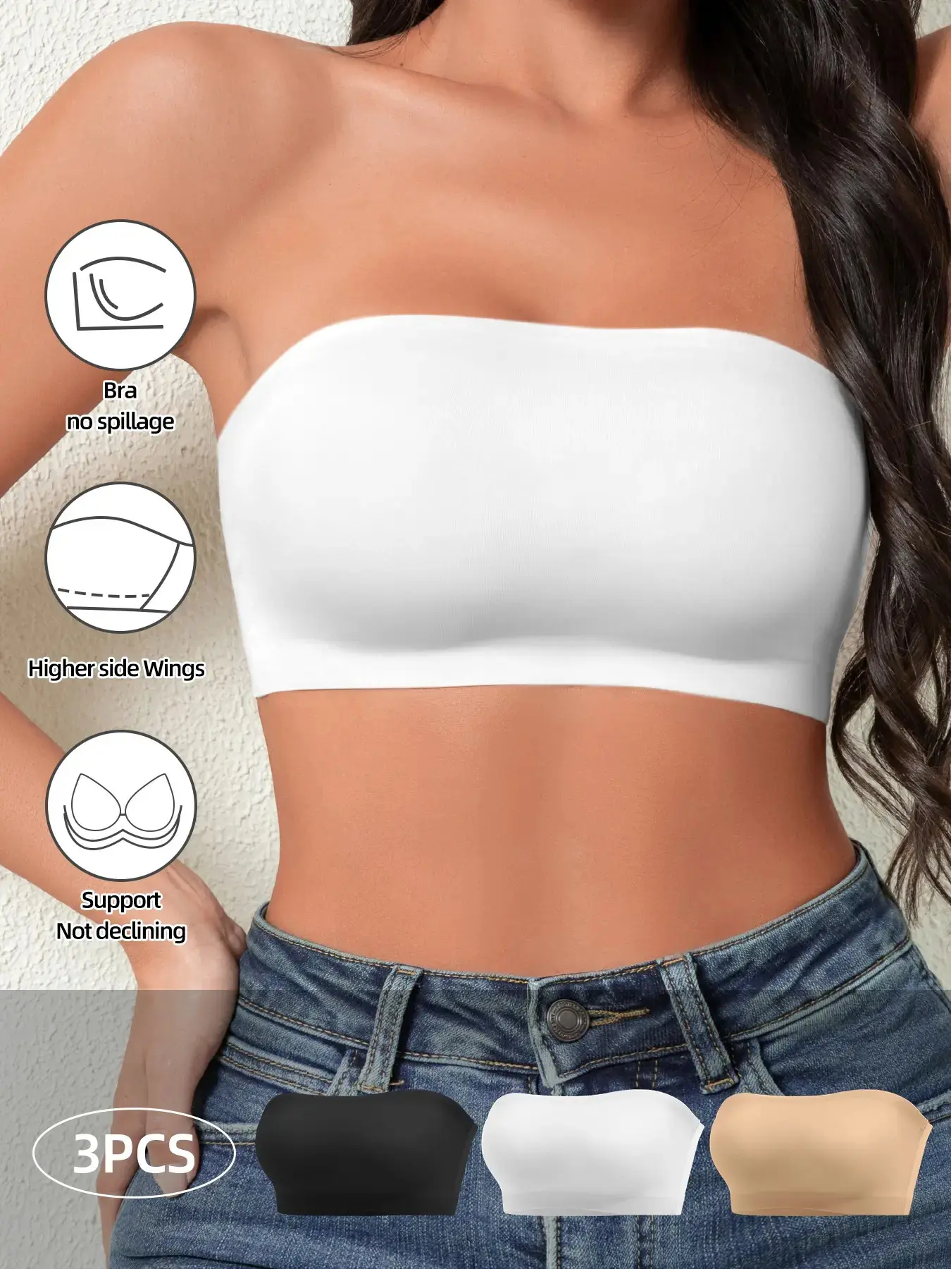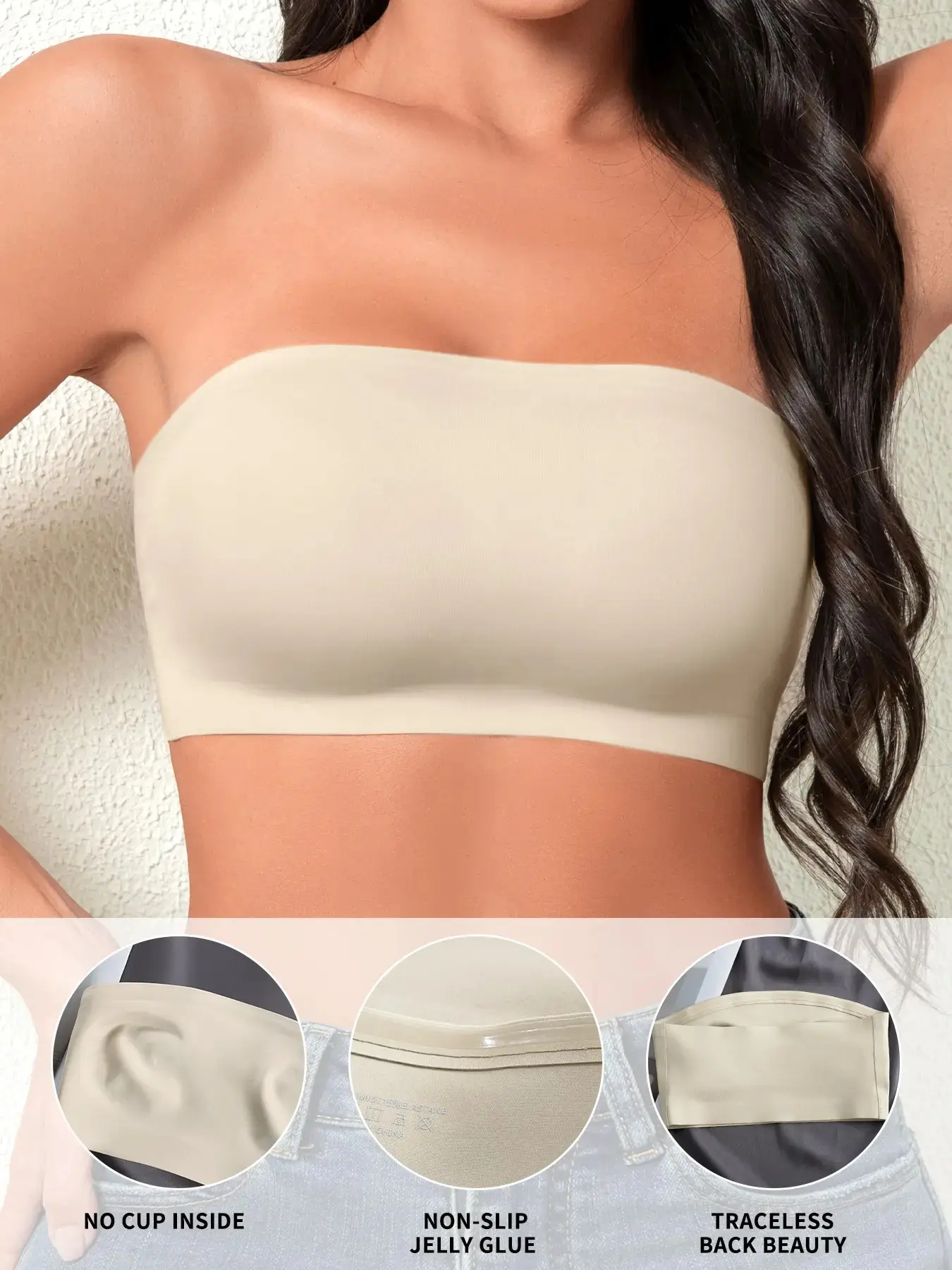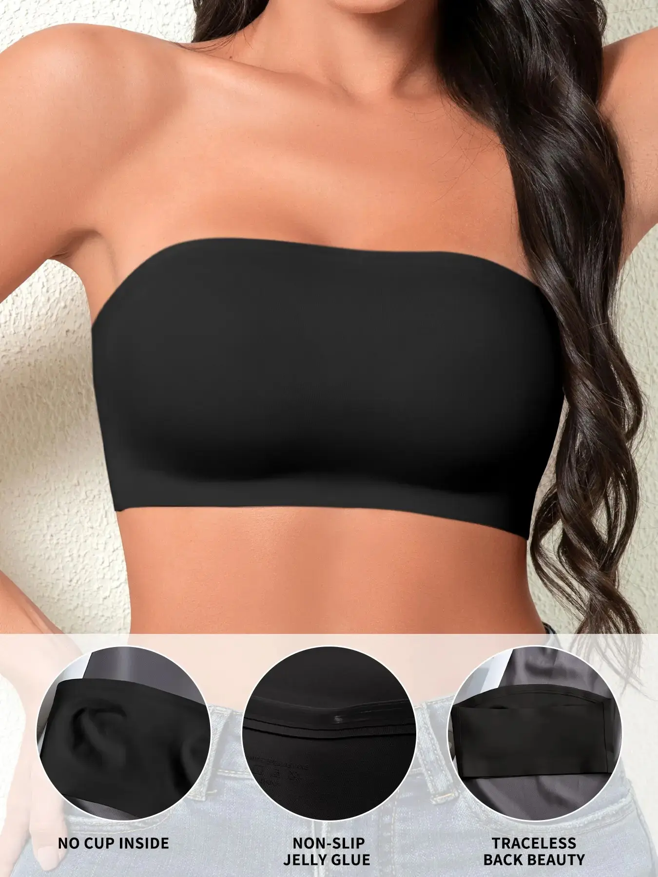 [Strapless support]: Featuring a strapless design, it provides minimal support while remaining securely in place.