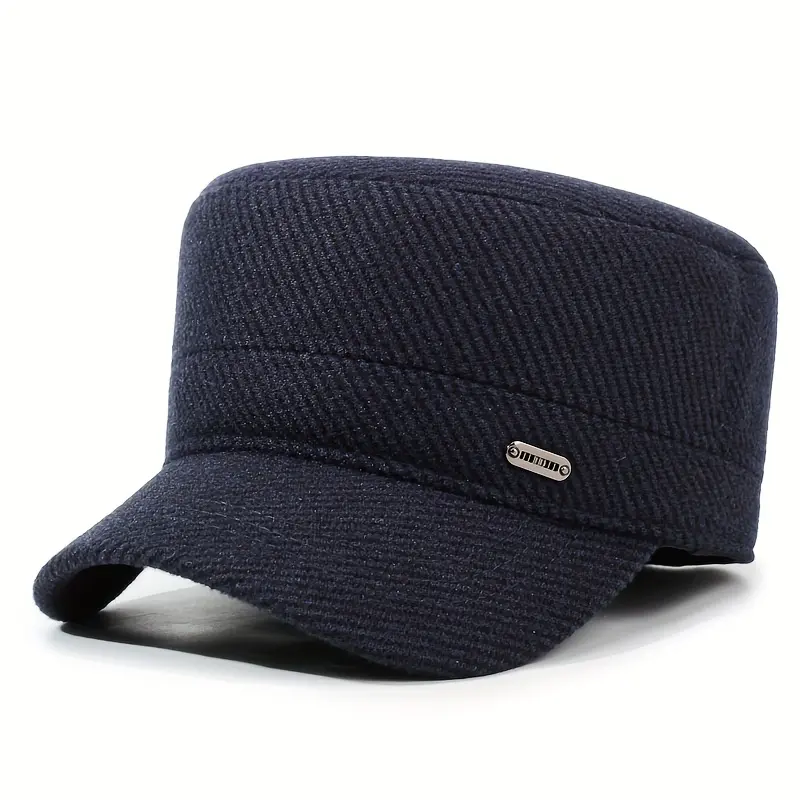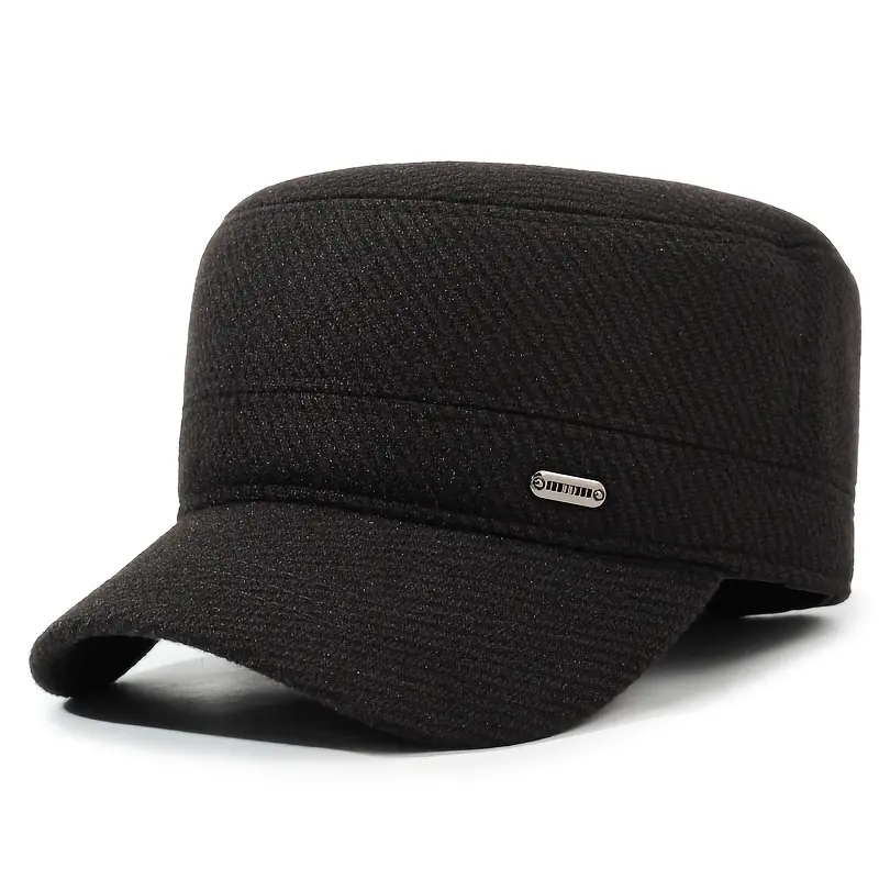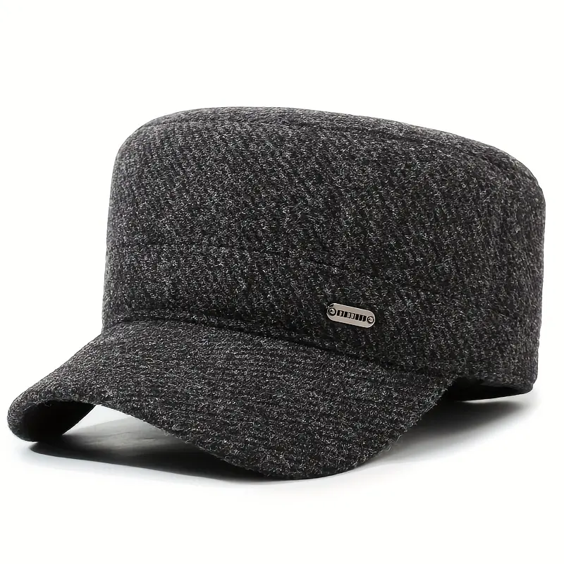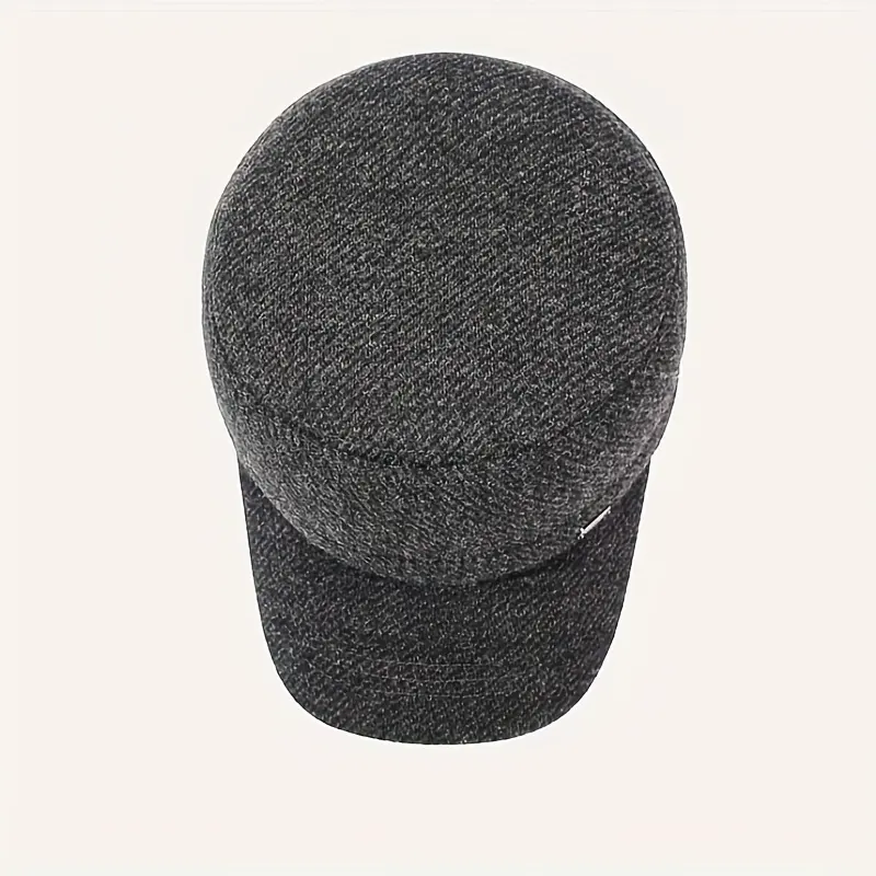 Men's Winter Warm Fleece-Lined Thickened Flat Cap with Ear Flaps - Tweed Style Felt Hat for Elderly & Middle-Aged, Multi-Color Options (Black, Navy, Brown, Grey) - Outdoor & Formal Cold Weather, Christmas/Thanksgiving/Halloween Accessory, Funky & Stylish