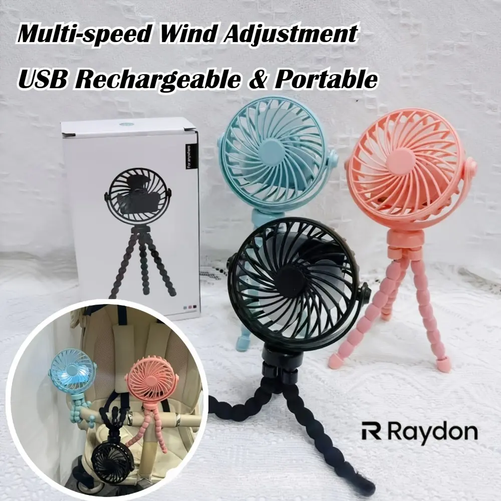 This versatile fan features a fully adjustable 360° rotating head and bendable tripod legs that wrap, stand, or hold onto any surface. Perfect for strollers, desks, camping trips, or keeping cool on the go!Why You'll Love It: