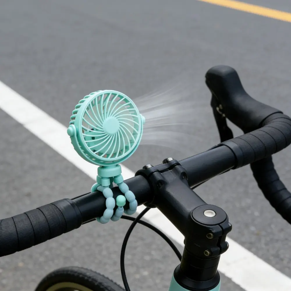 Flexible Octopus Tripod: Wrap around stroller handles, bike bars, or even hold it in your hand. Stand it on desks, tables, or your cooler for hands-free cooling.