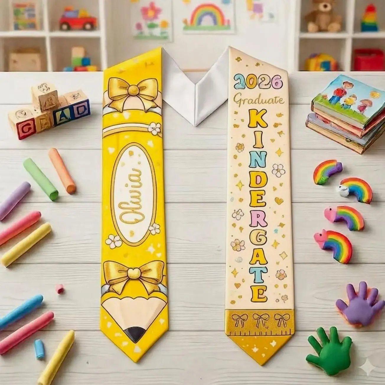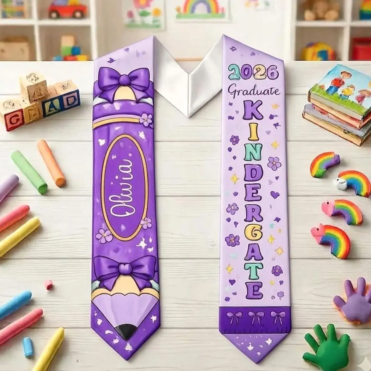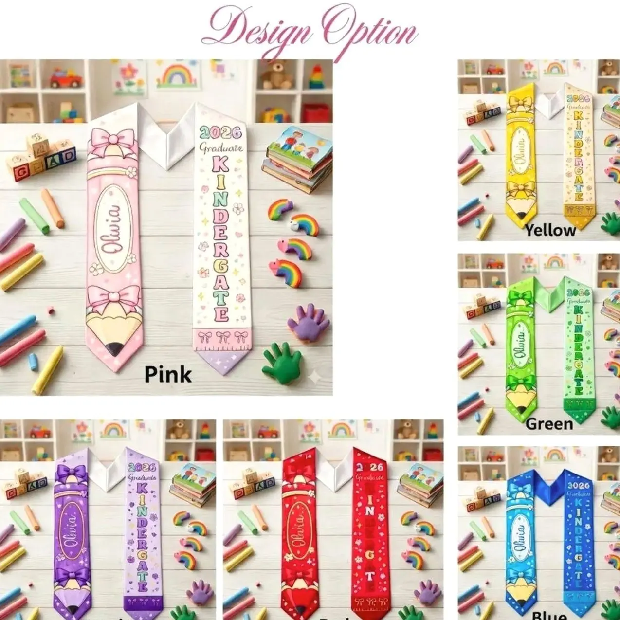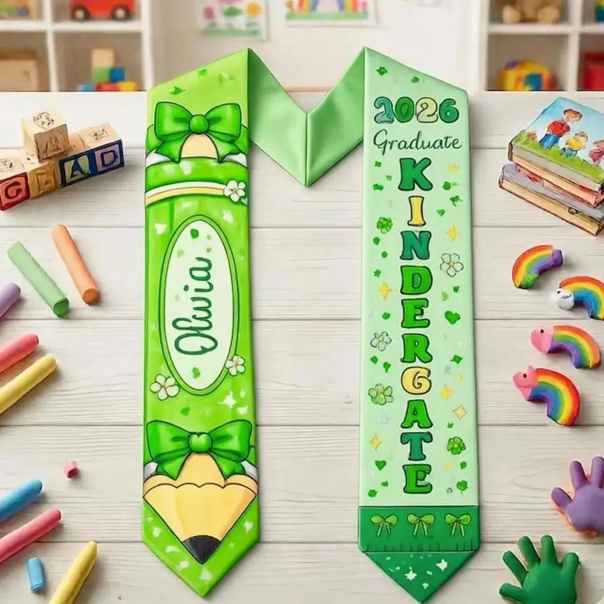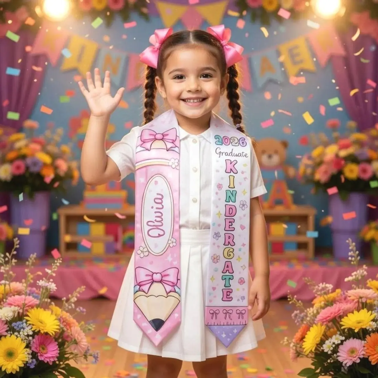 5. Personalized Kindergarten Graduation Stole 2026 – Pink Pencil Sash for Girls