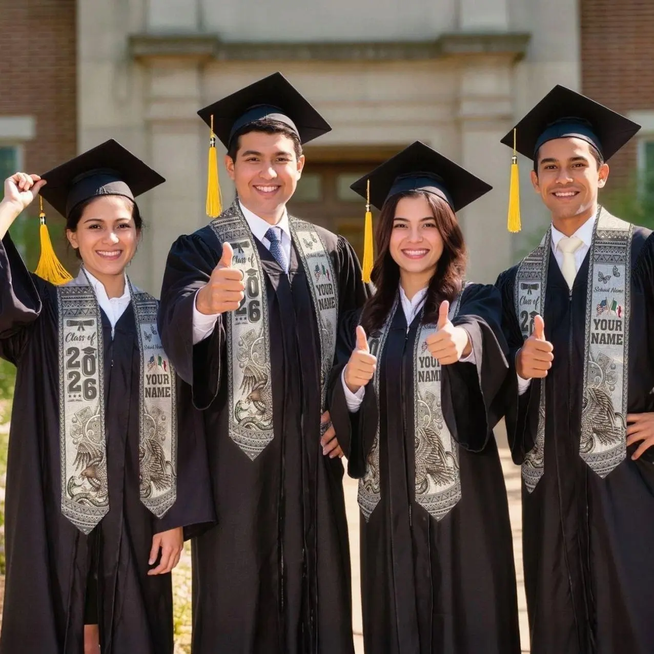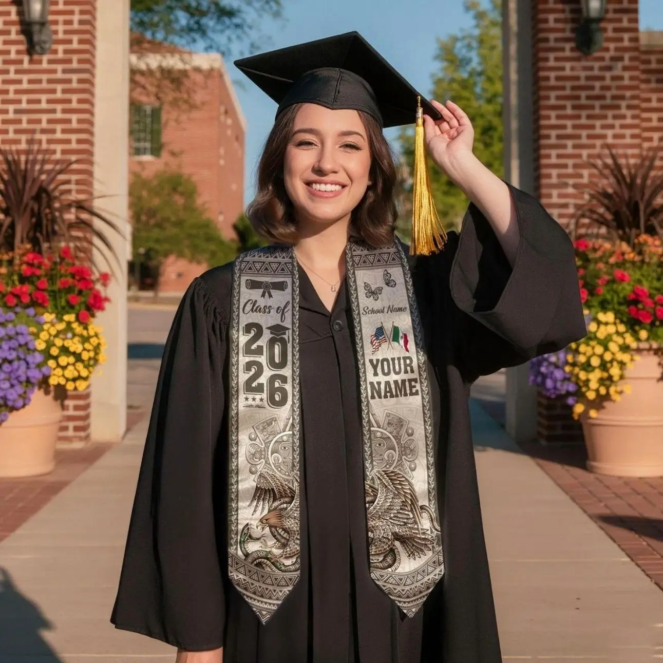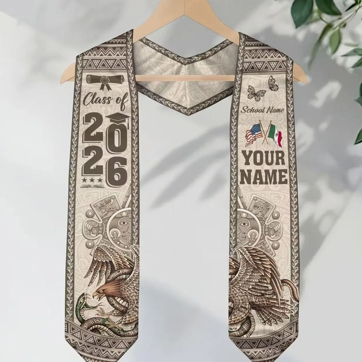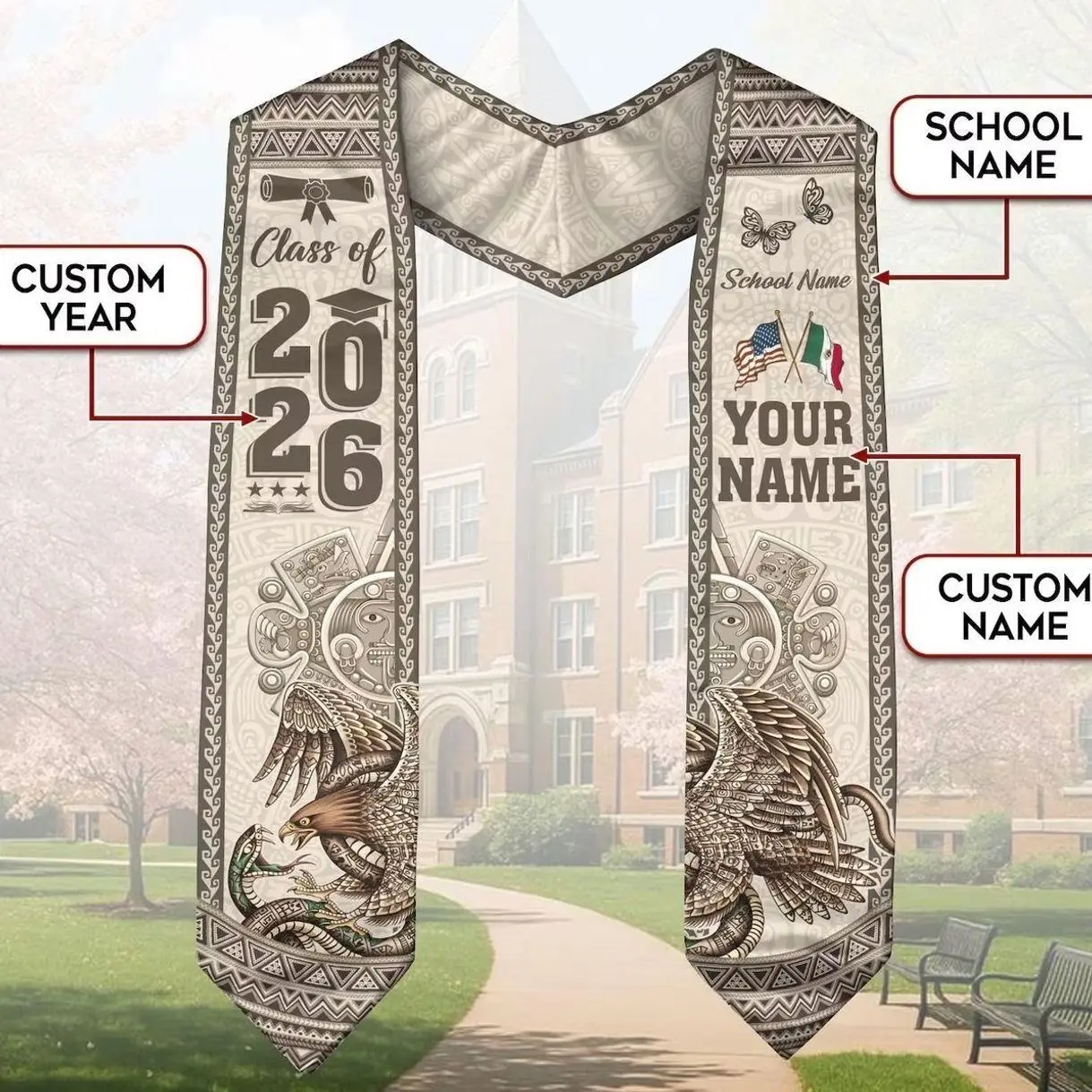 Custom Name & School Mexican Graduation Stole, Mexican Flag Graduation Sash, Mexico Stole Class of 2026, Aztec Pattern Sash Senior Grad Gift