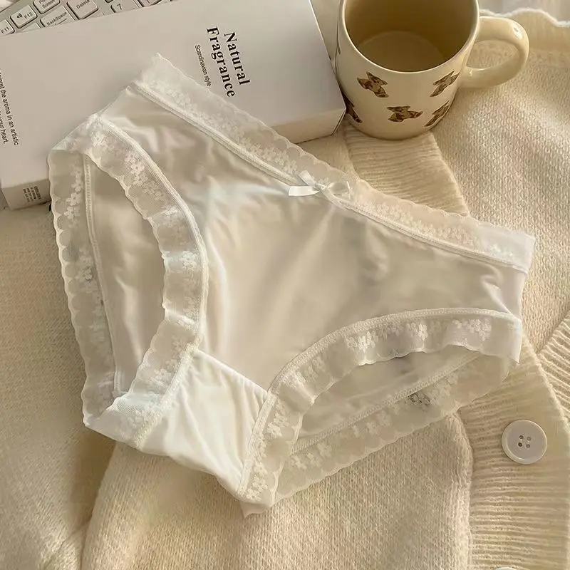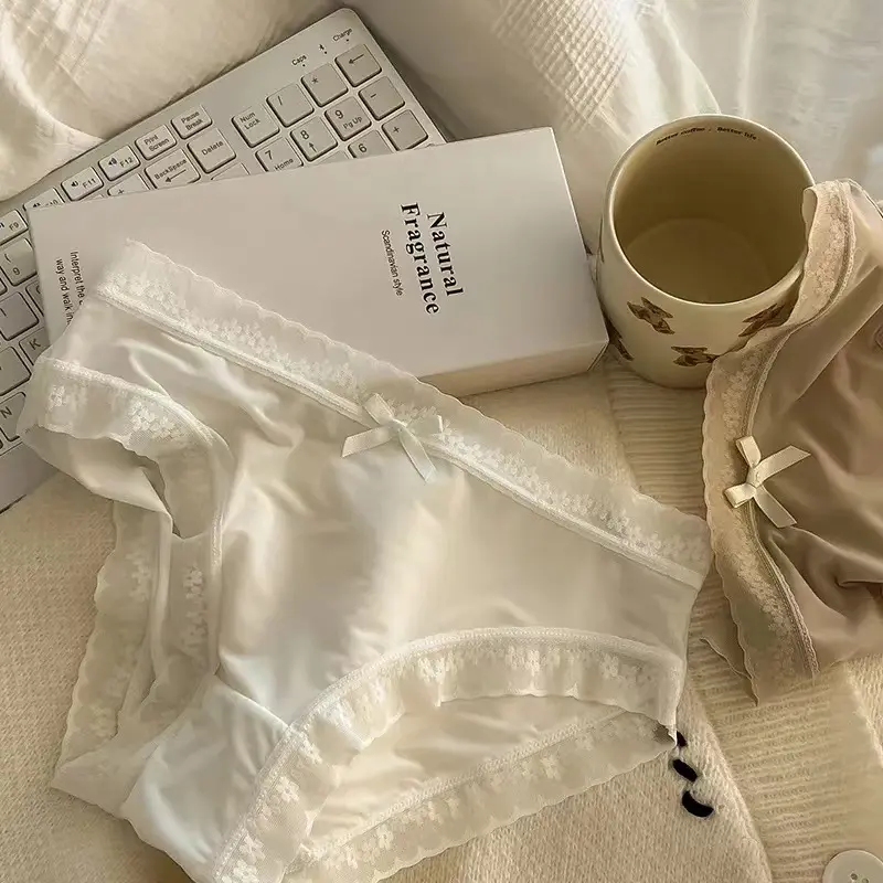 "Cream Girl" [Butt Mask Pants] Spring/Summer Color Ice Silk Panties for Girls, Mid-Waist, Quick-Dry, Lace Trim