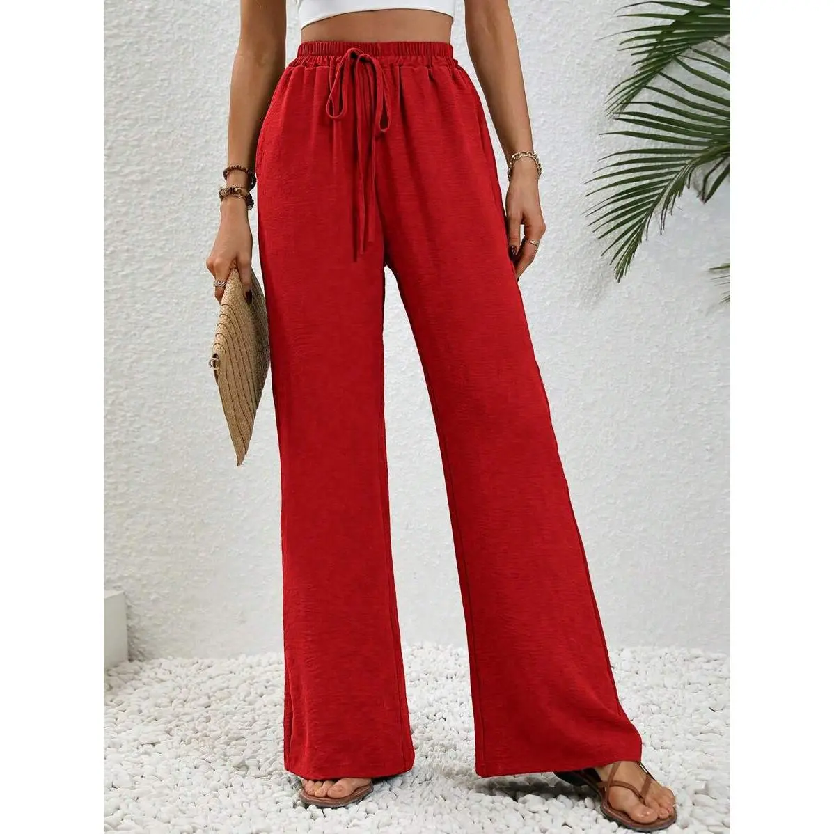 BTFBM Women Casual High Waist Wide Leg Pants Summer Floral Solid Long Palazzo Pants Lounge Beach Trousers with Pockets #Outdoorfun