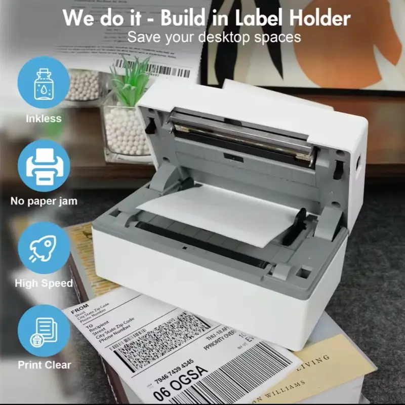 This thermal label printer is perfect for small businesses. It operates without ink, ensuring hassle-free printing. With a resolution of 203DPI, it delivers clear and precise labels. Ideal for 4x6 sizes, it's versatile for various needs. Bluetooth and USB connectivity options provide flexibility in use. High-speed printing makes it efficient for busy environments. Perfect for express airway bills and other labeling tasks.