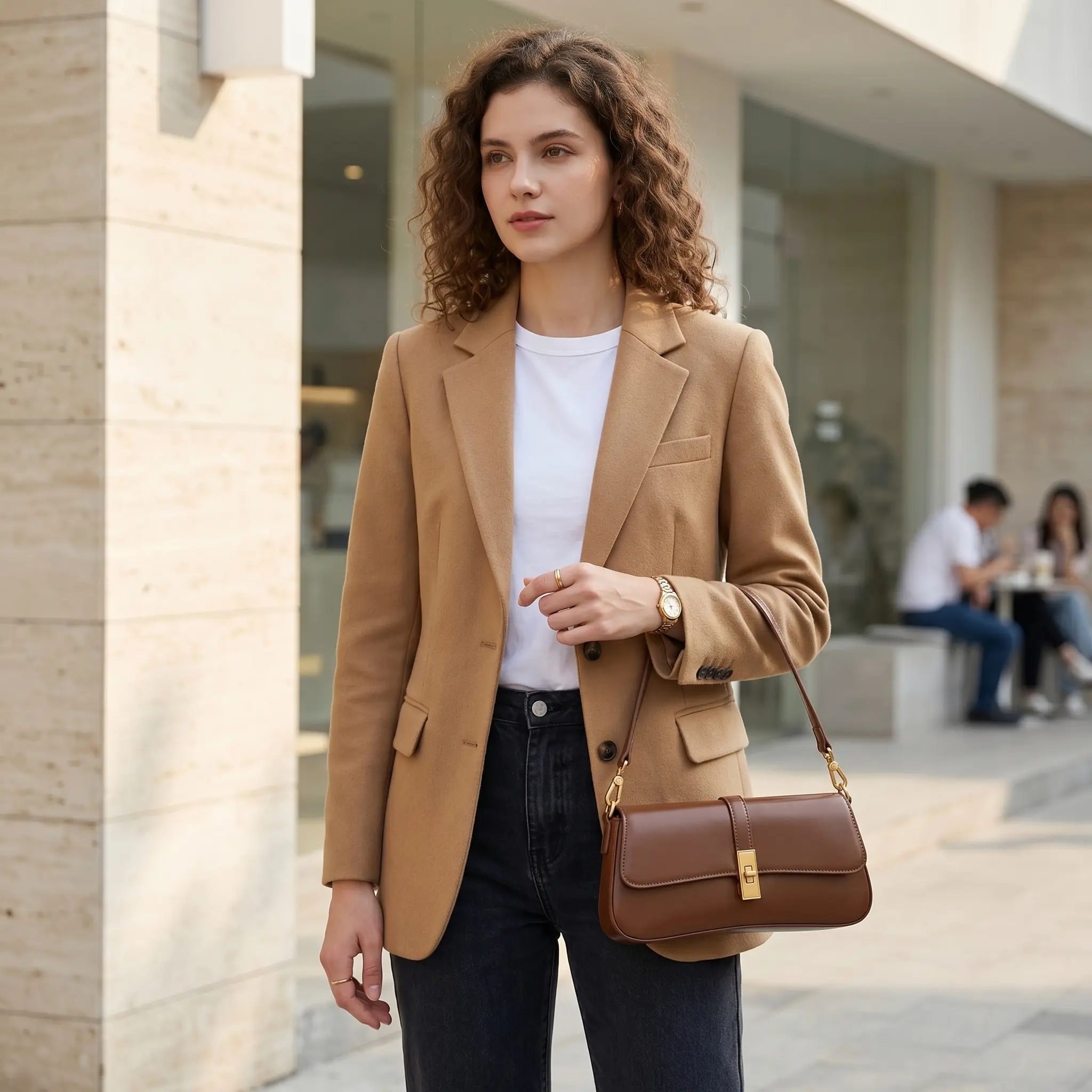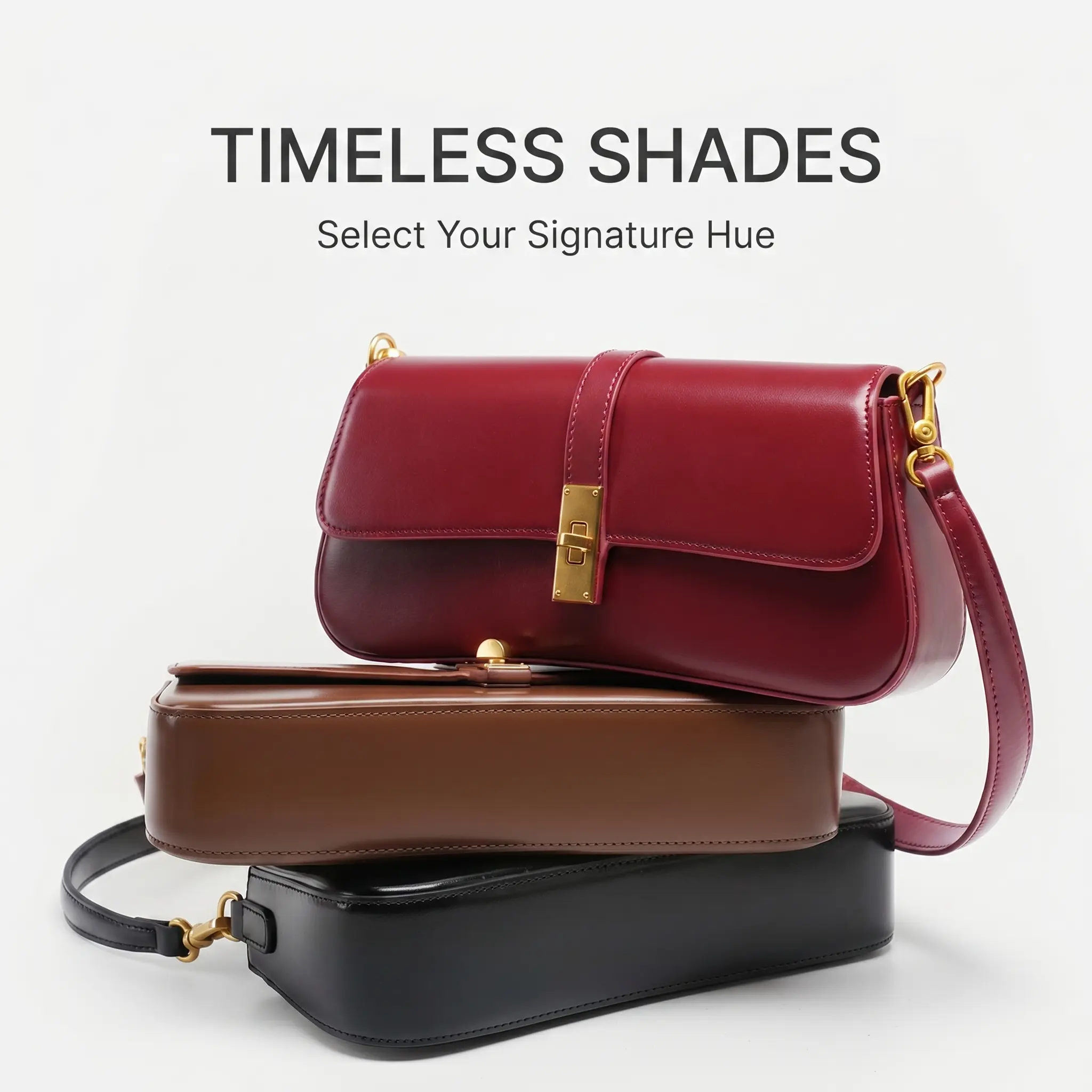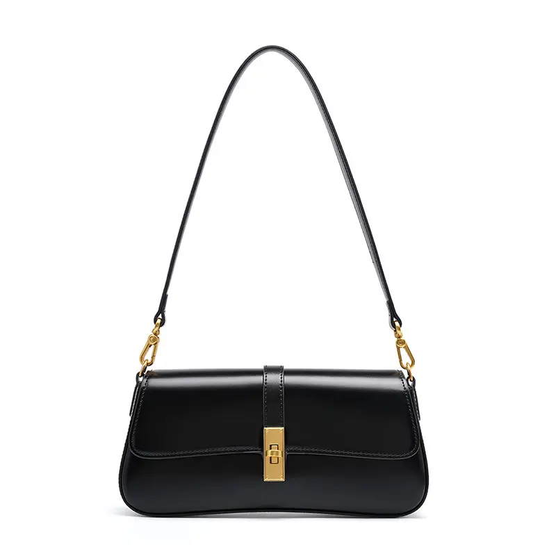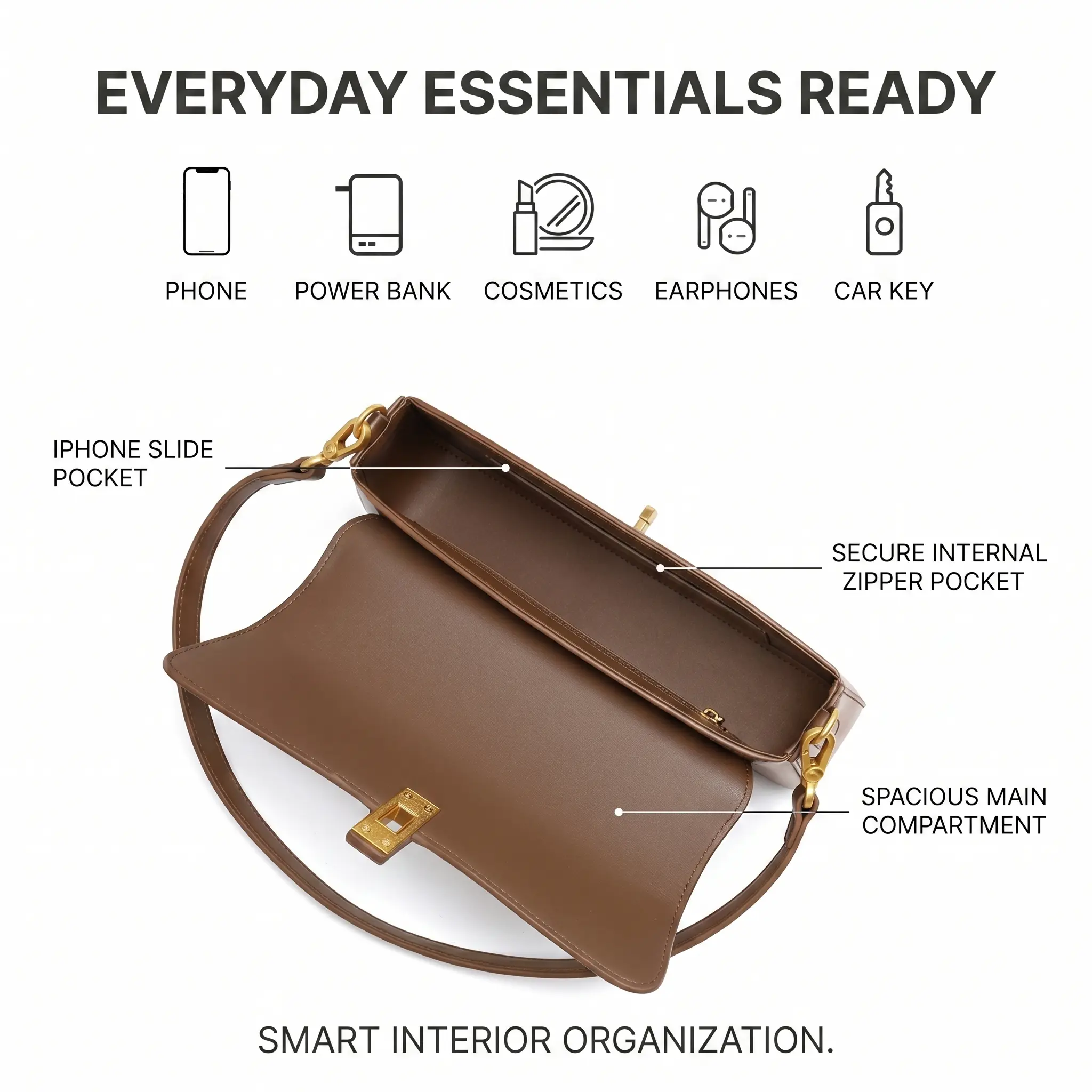 Women's Minimalist Shoulder Bag Smooth Faux Leather Underarm Purse with Metal Lock Versatile bag