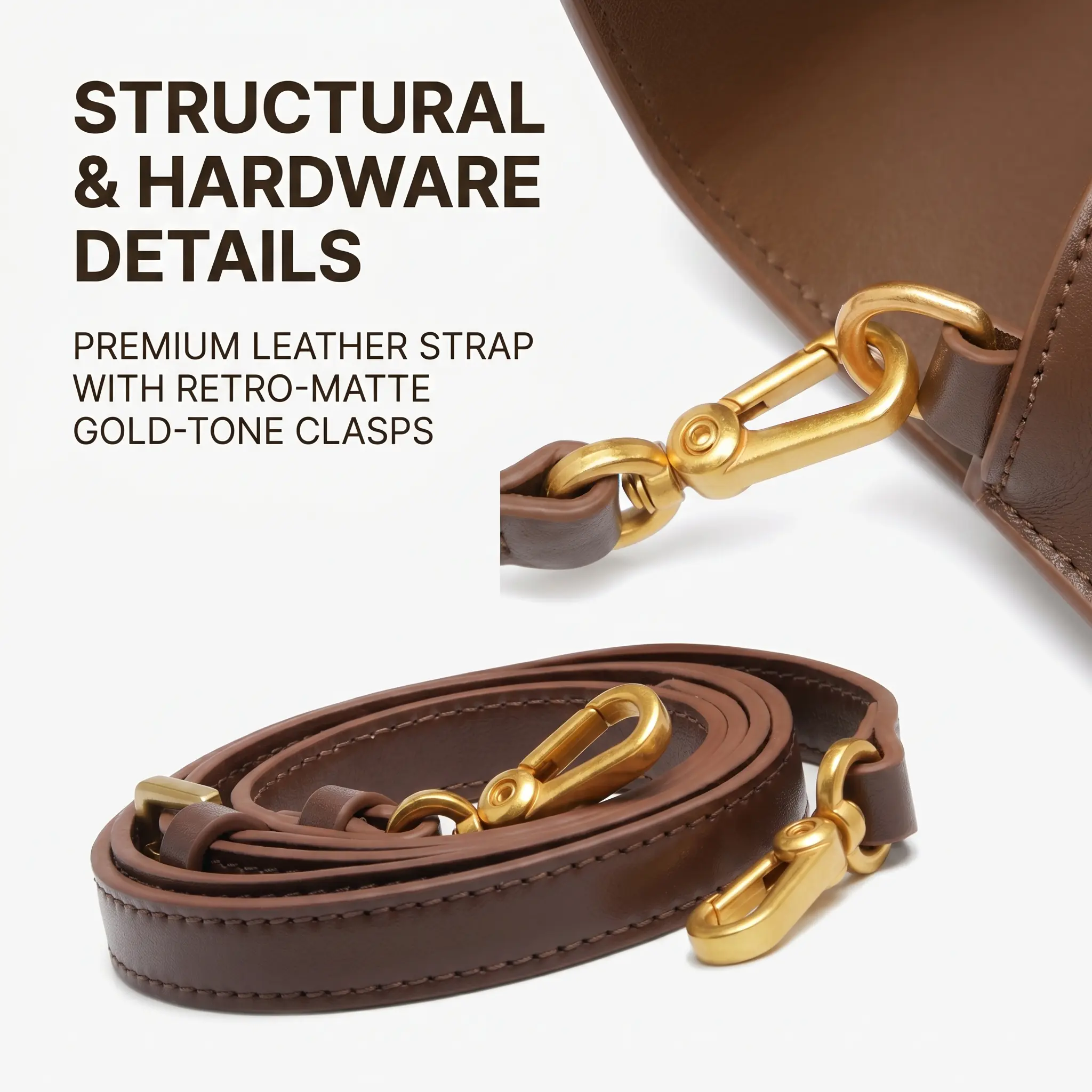 Women's Vintage Quiet Luxury Shoulder Bag Elegant Dark Brown Tote with Gold Buckle