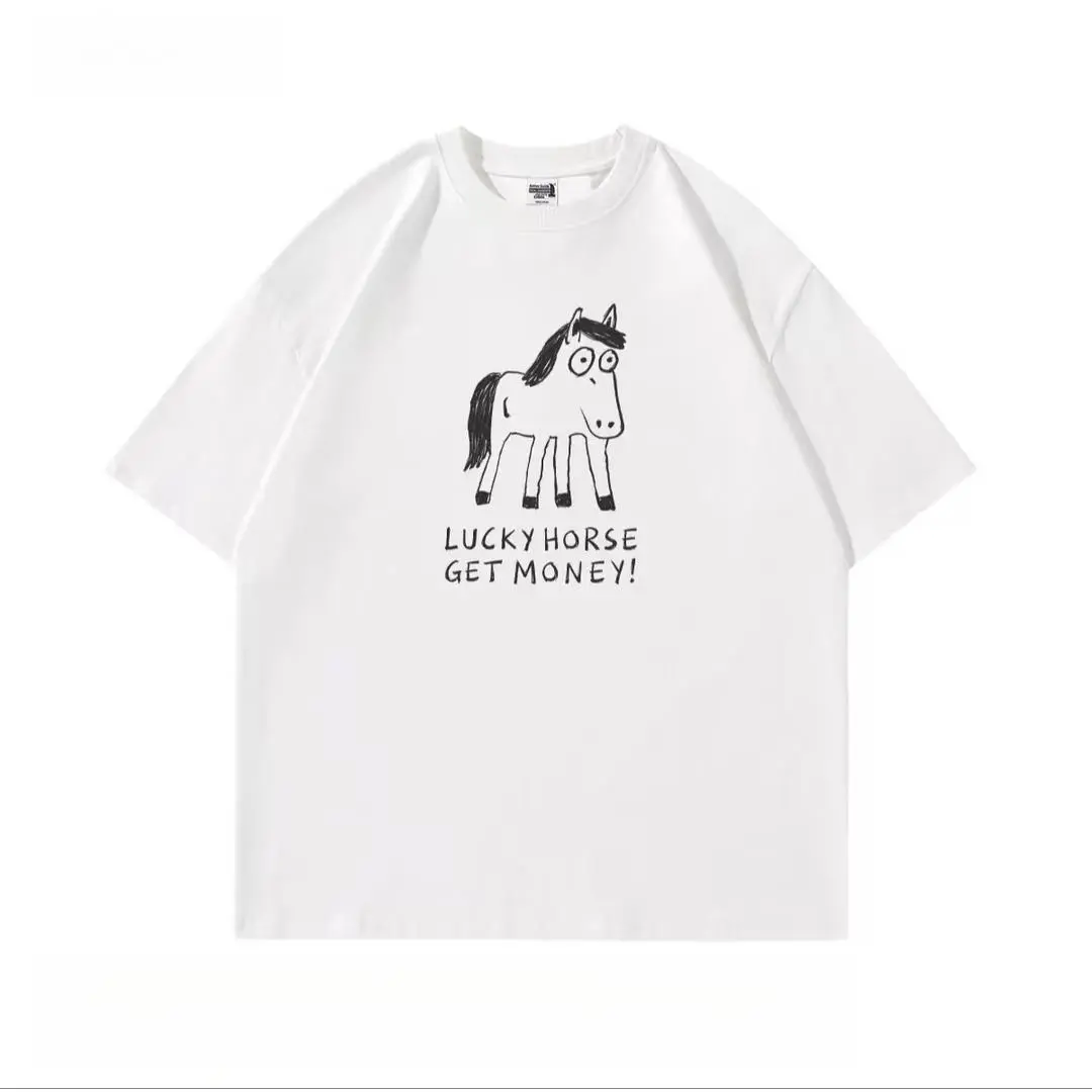 Lucky Horse Money-Making T-Shirt, Funny Cartoon Horse Print Short Sleeve, Unisex Casual Streetwear, Exclusive Creative Gift for Horse Fans & Enthusiasts