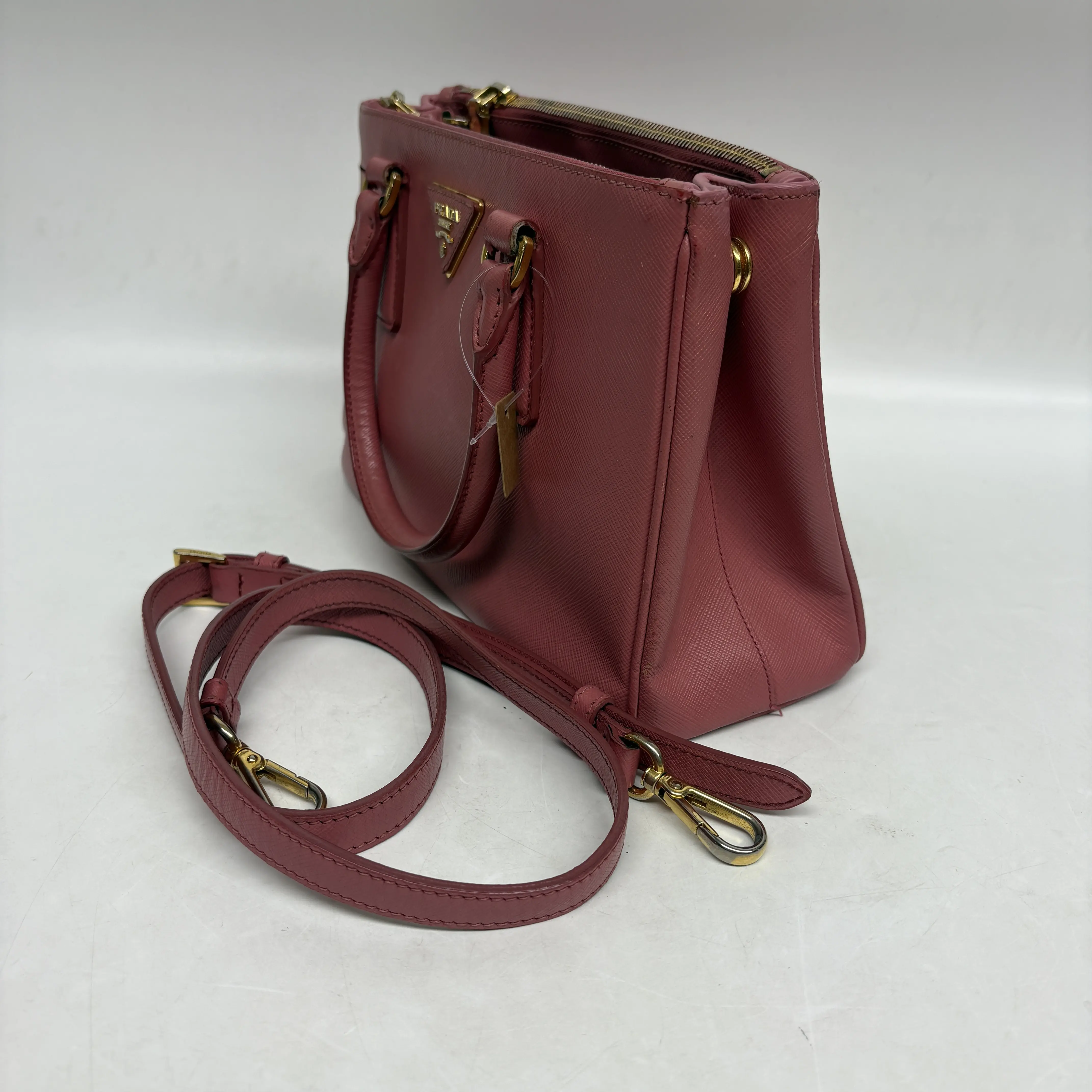 The Prada Galleria Pink Small is designed for practicality without compromising on style. Its small size ensures it fits easily into your bag, making it a convenient choice. The pink color complements many outfits, enhancing your look effortlessly. This bag is a must-have for those who value both functionality and fashion.