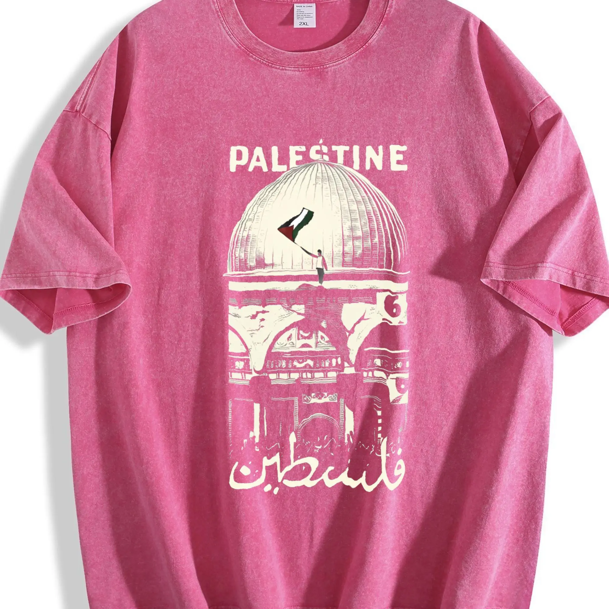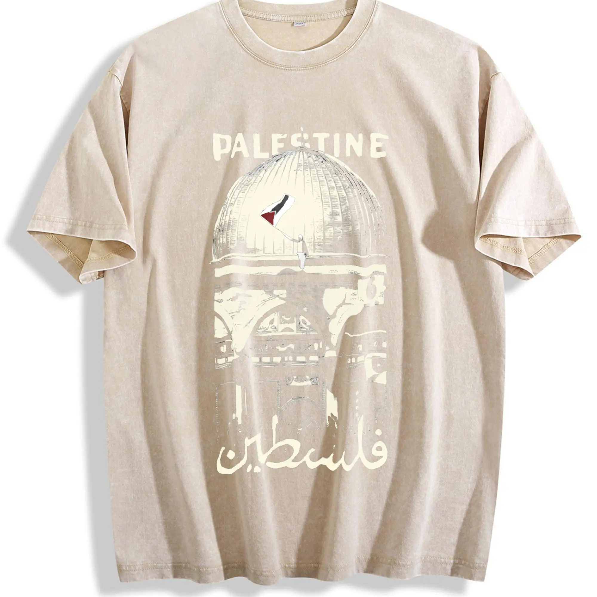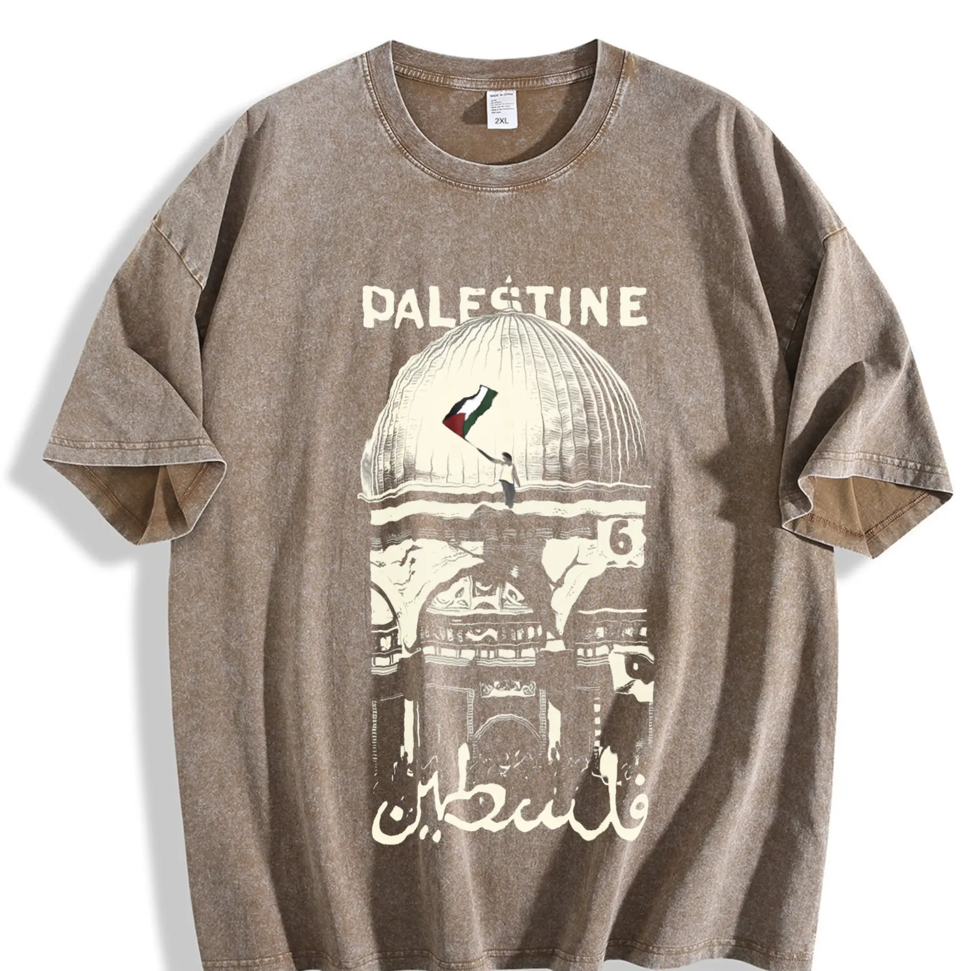 Palestine Freedom Vintage Oversized Tee – Double-Sided Washed Heavy Cotton Shirt with Hope & Solidarity Graphic | Retro Streetwear Limited Drop Menswear Top