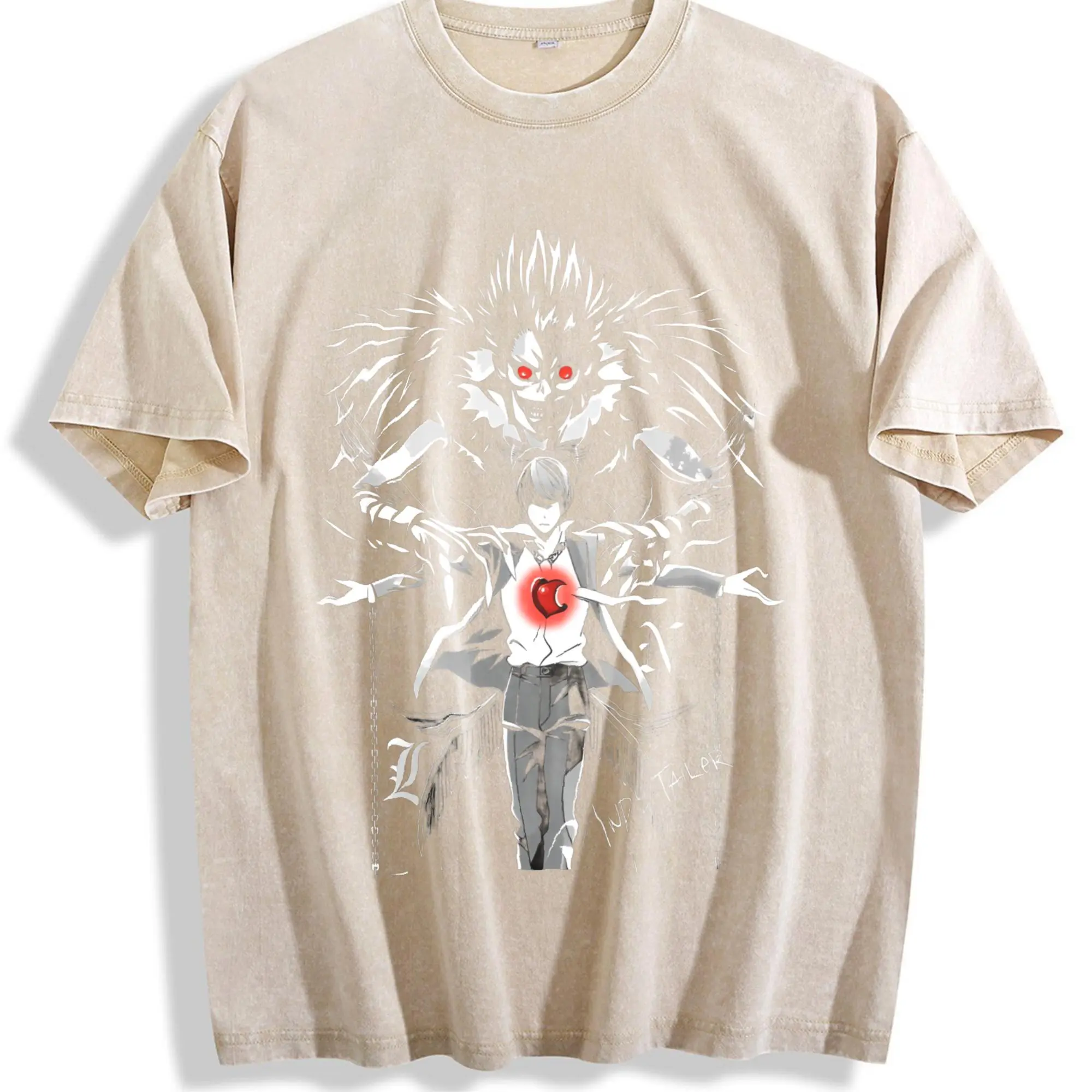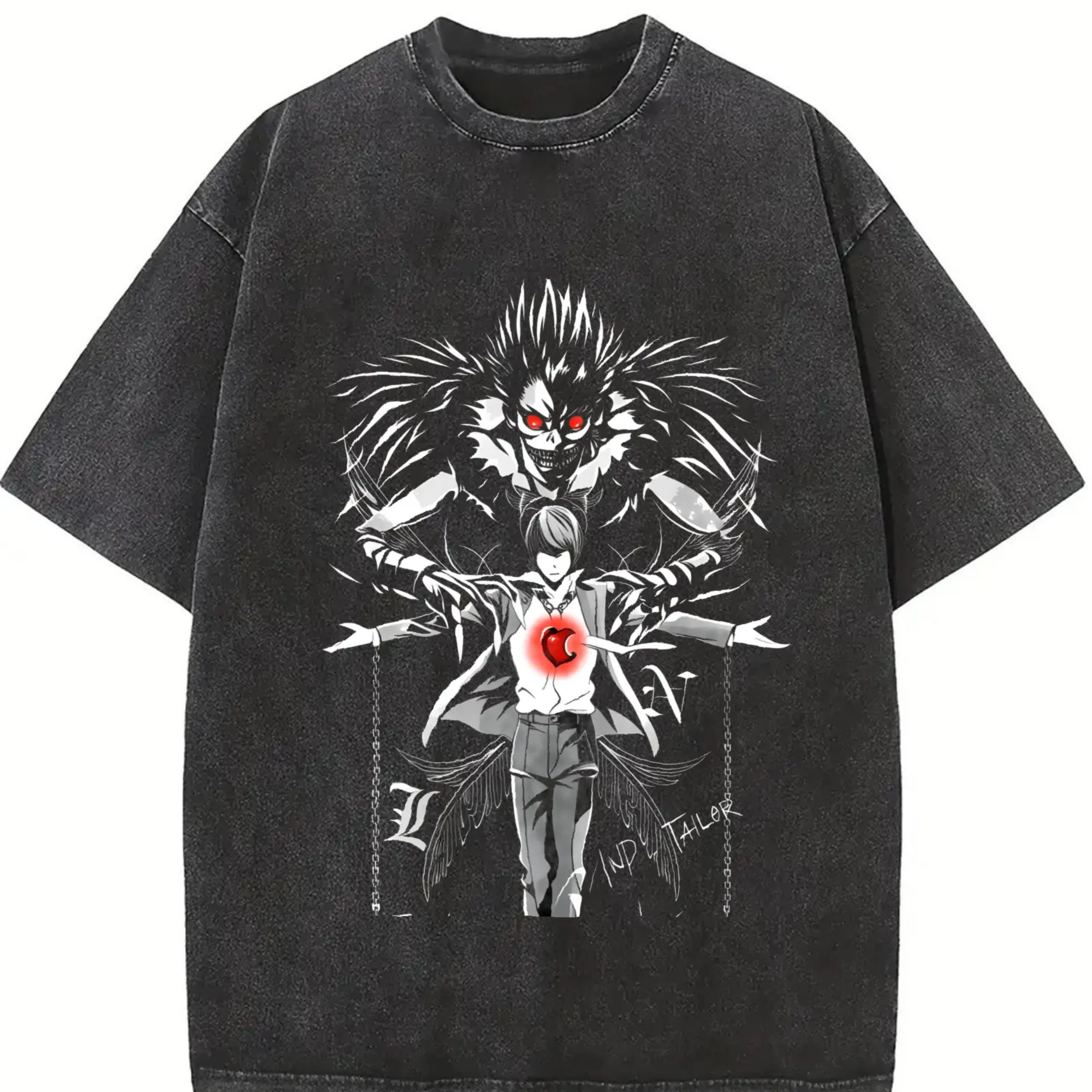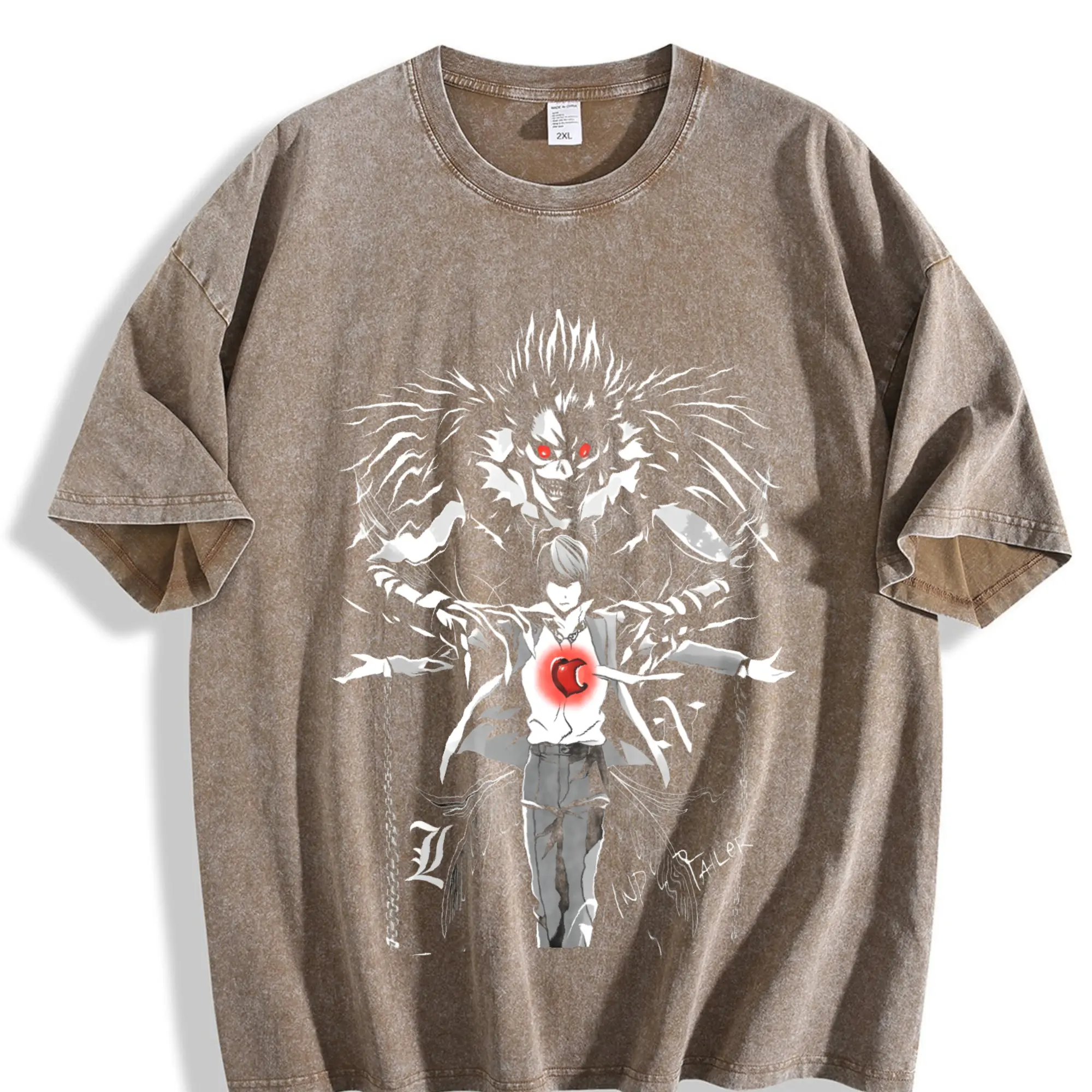Ryuk & Light Yagami (Kira) Washed Tee – Death Note Anime Streetwear Vintage T-Shirt