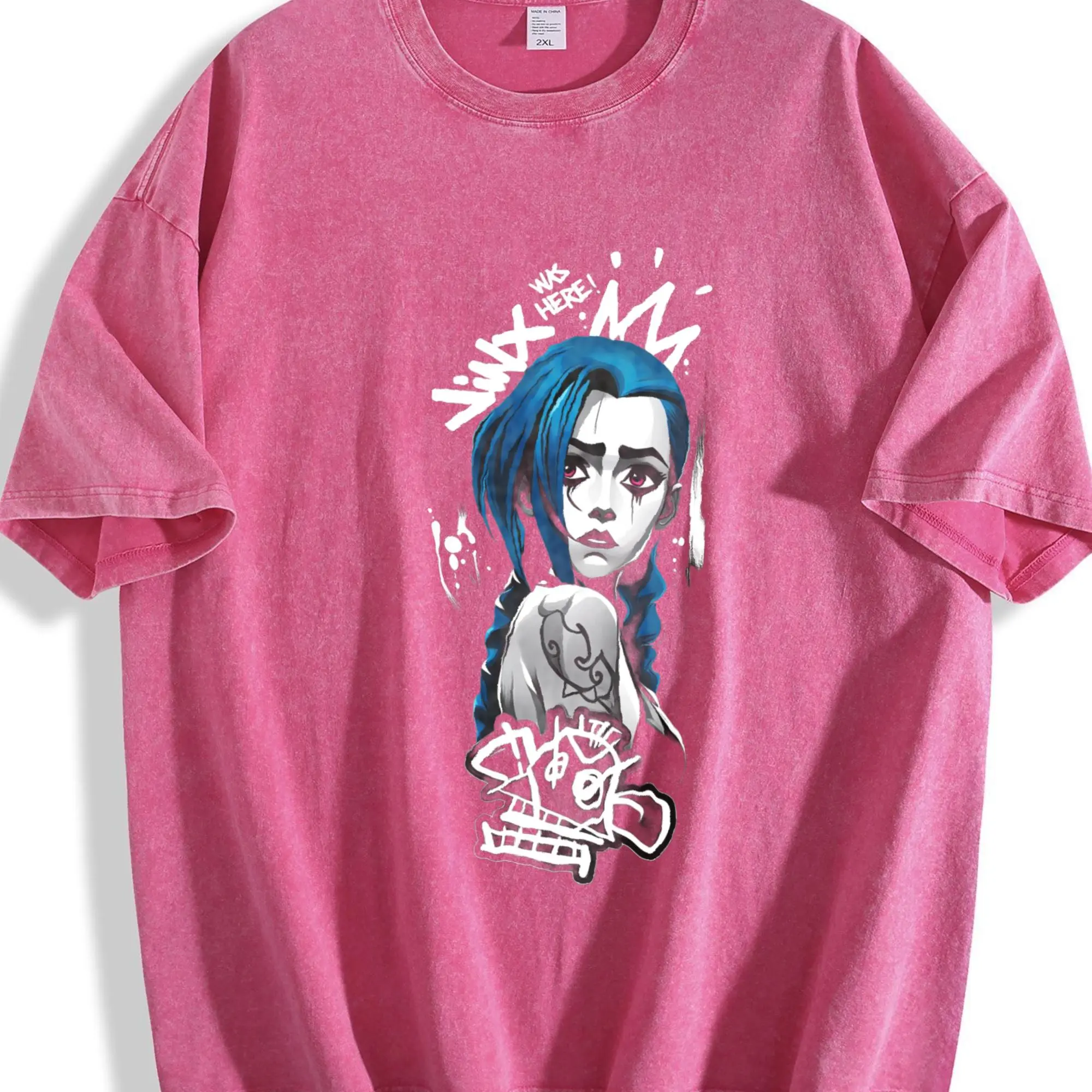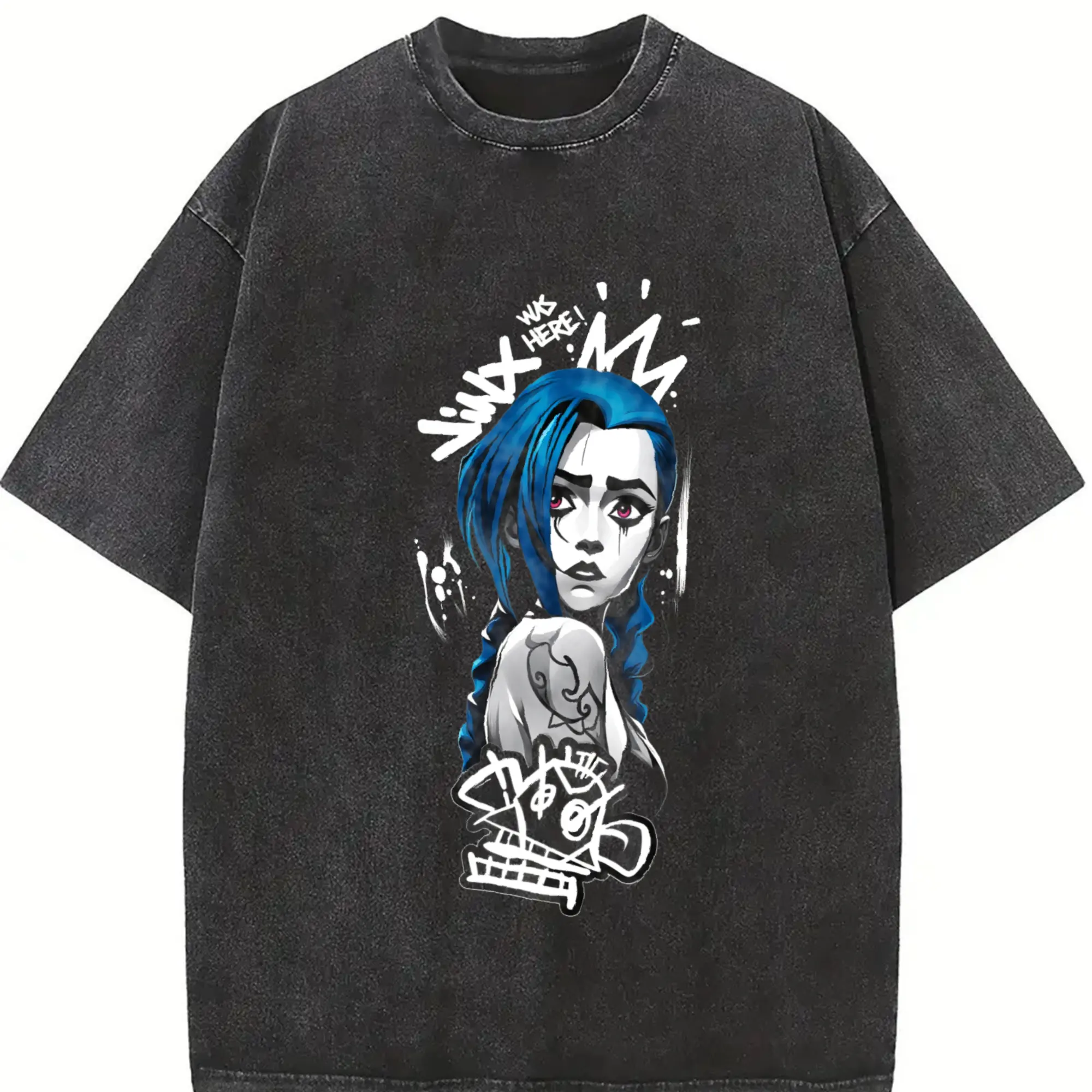 valentine shirts Retro Vintage Jinx x Powder Arcane: League of Legends Washed T-shirt Game Cotton, FPS, Game Lover Unisex Shirt Gift for Him Her Y2K Hoodie Sweatshirt Clothes Menswear streetwear t-shirt clothes