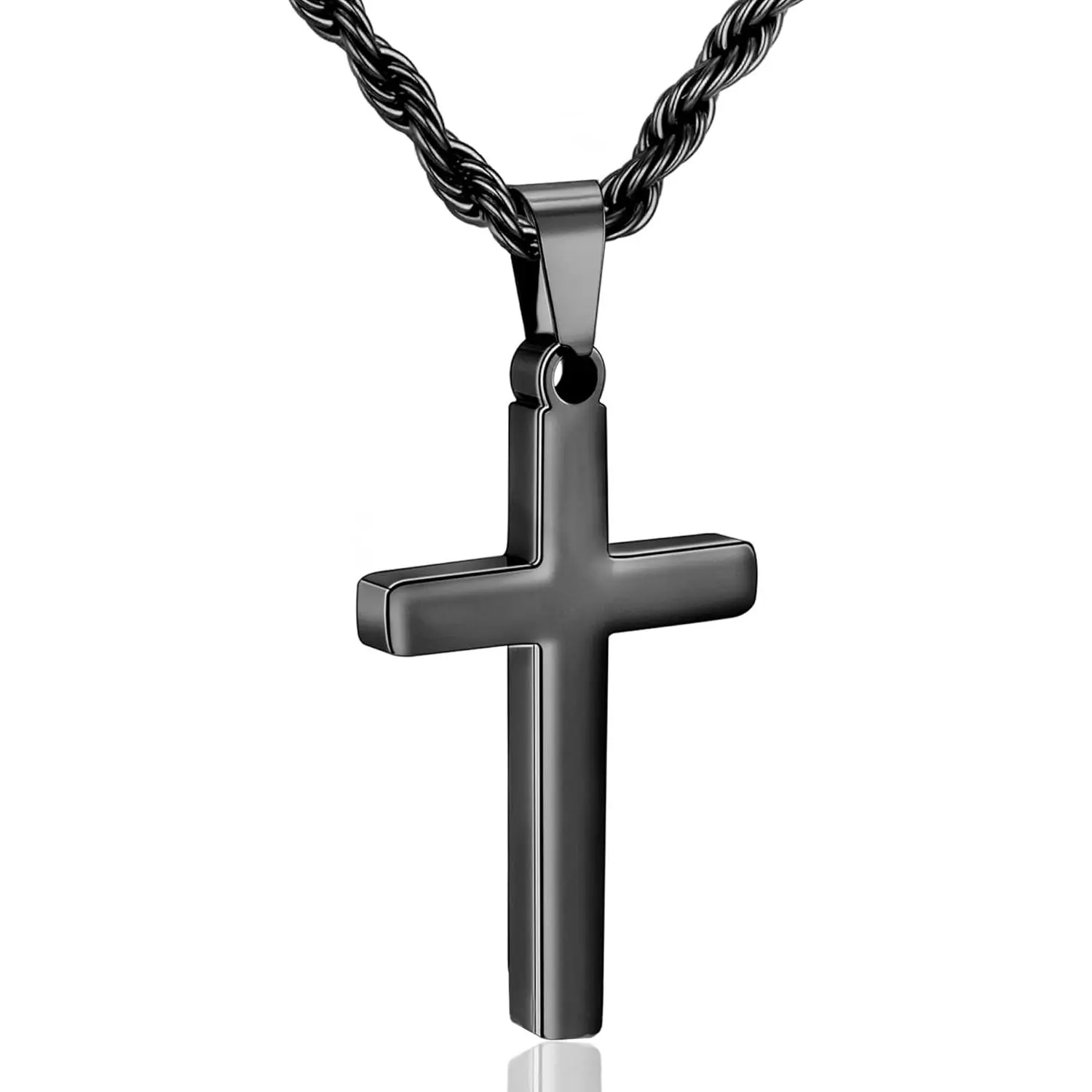 Cross Necklace for Boys Mens Stainless Steel Twisted Rope Chain Cross Pendant Rustproof Necklace for Teen Boy Mens Christian First Communion Confirmation Gifts for Boys