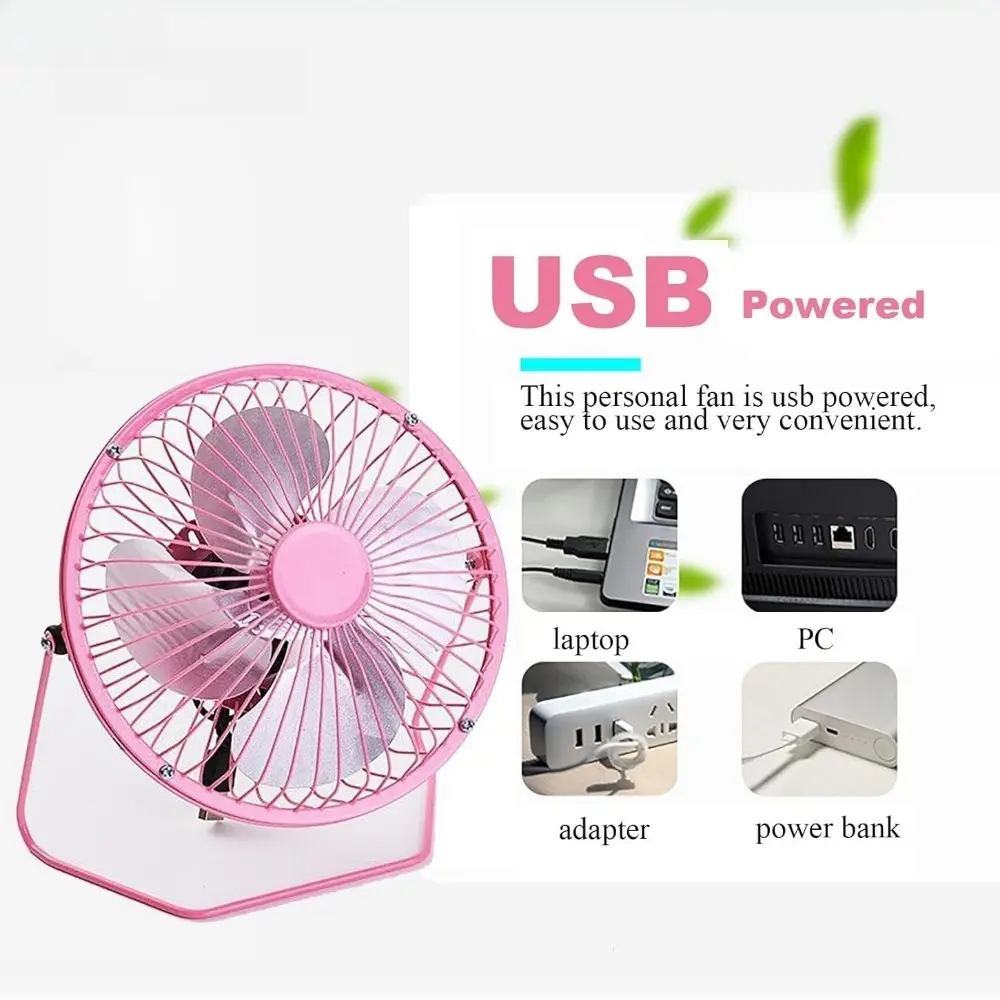 4" USB Metal Desk Fan - No Batteries Needed, Single Speed, Portable Cooling for Work & Travel