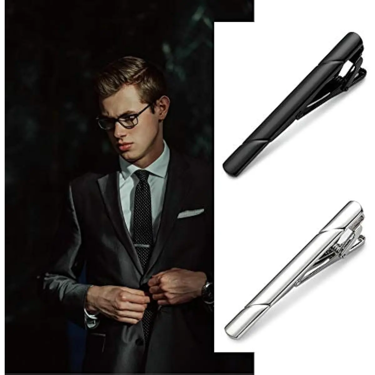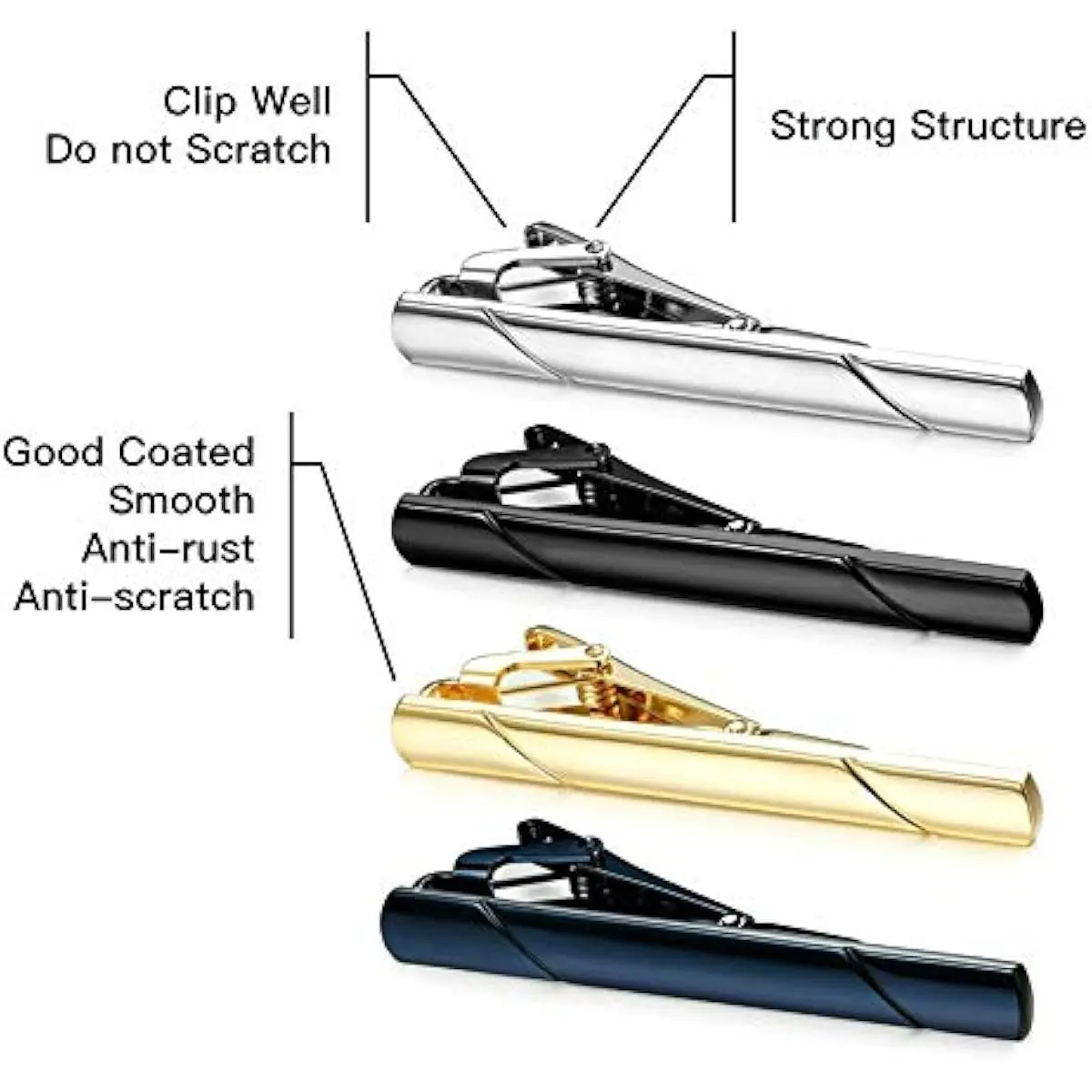 Tie Clips for Men, Black Gold Blue Silver Tie Bar Set for Regular Ties, Luxury Box Gift Ideas
