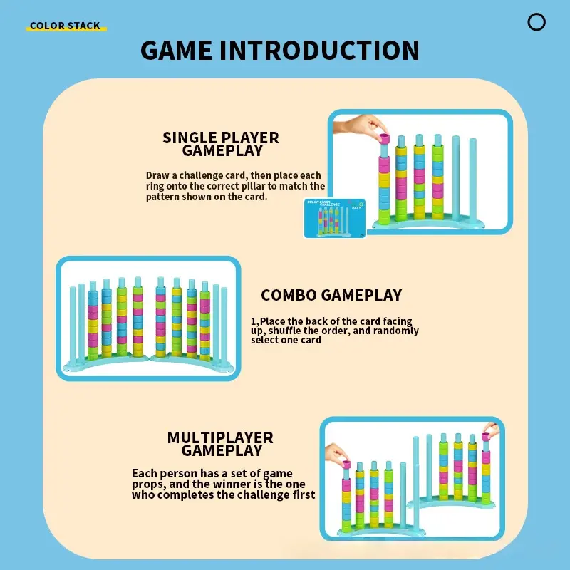 Dive into the Color Stacker Challenge Puzzle, a matching game perfect for kids and adults. This interactive toy is ideal for family parties, offering endless fun and learning. It's a premium birthday gift that combines entertainment with education. Enjoy hours of gameplay with this engaging puzzle.