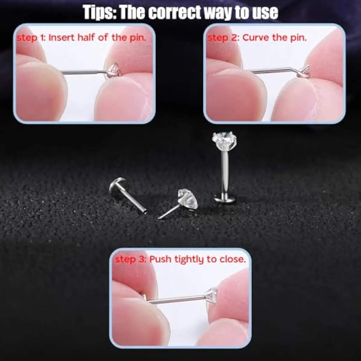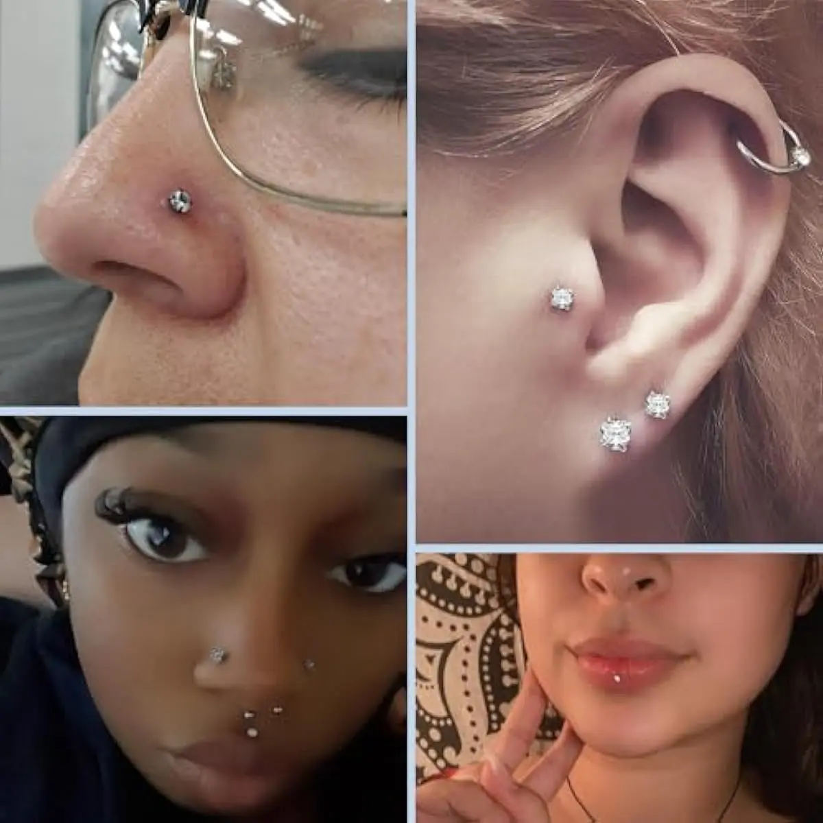 16g/18g Surgical Steel Internal Thread CZ Stud Piercing Jewelry for Tragus/Nose/Helix/Conch/Medusa/Lip/Labret - Helix Tragus Cartilage Earring for Women Men 2PCS