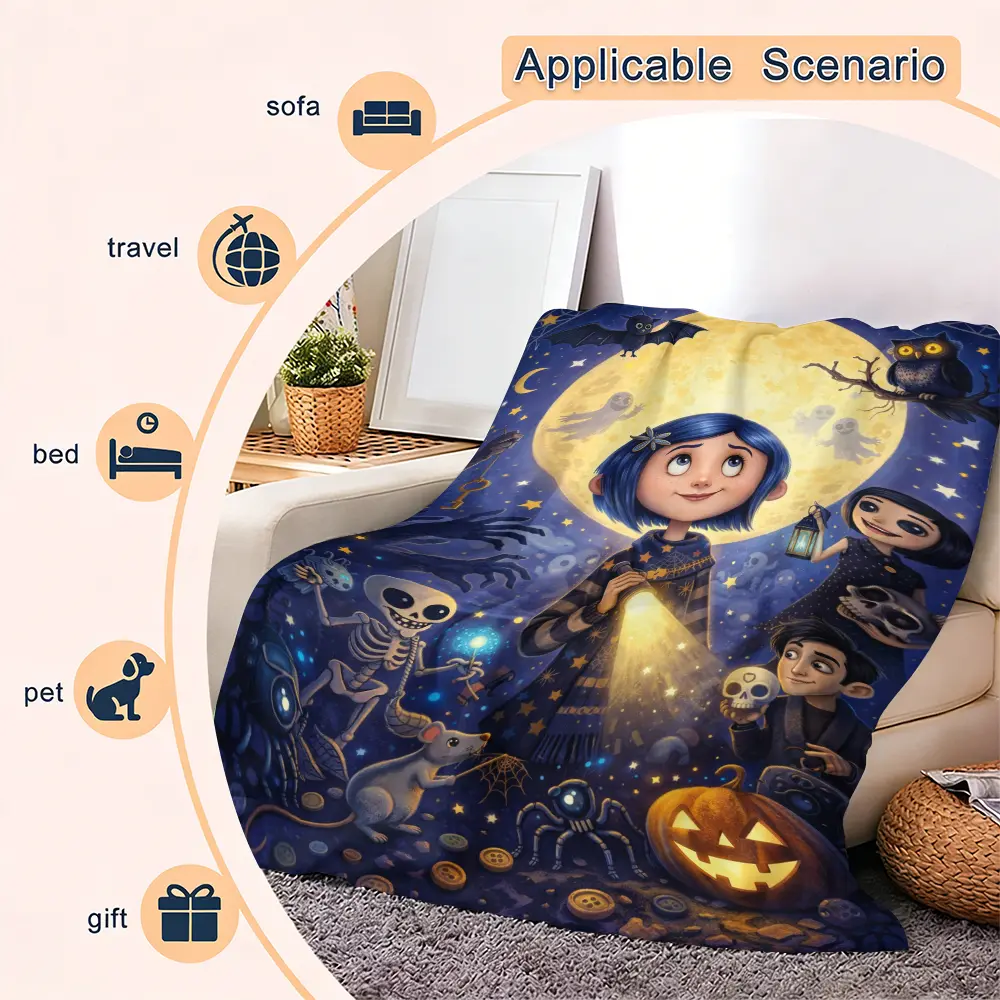 Coraline Cartoon Printied Blanket,Bed Throws Flannel Travel Blanket,throw blanket,Warm Beautiful Flannel Soft and Comfortable Blanket Home Travel Blanket,Adults Kids Holiday Birthday Xmas Christmas Party Gifts
