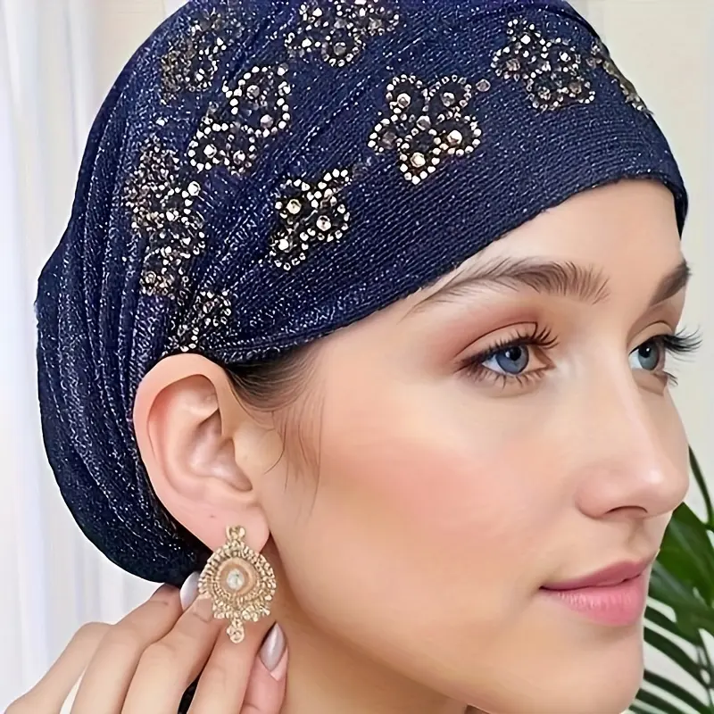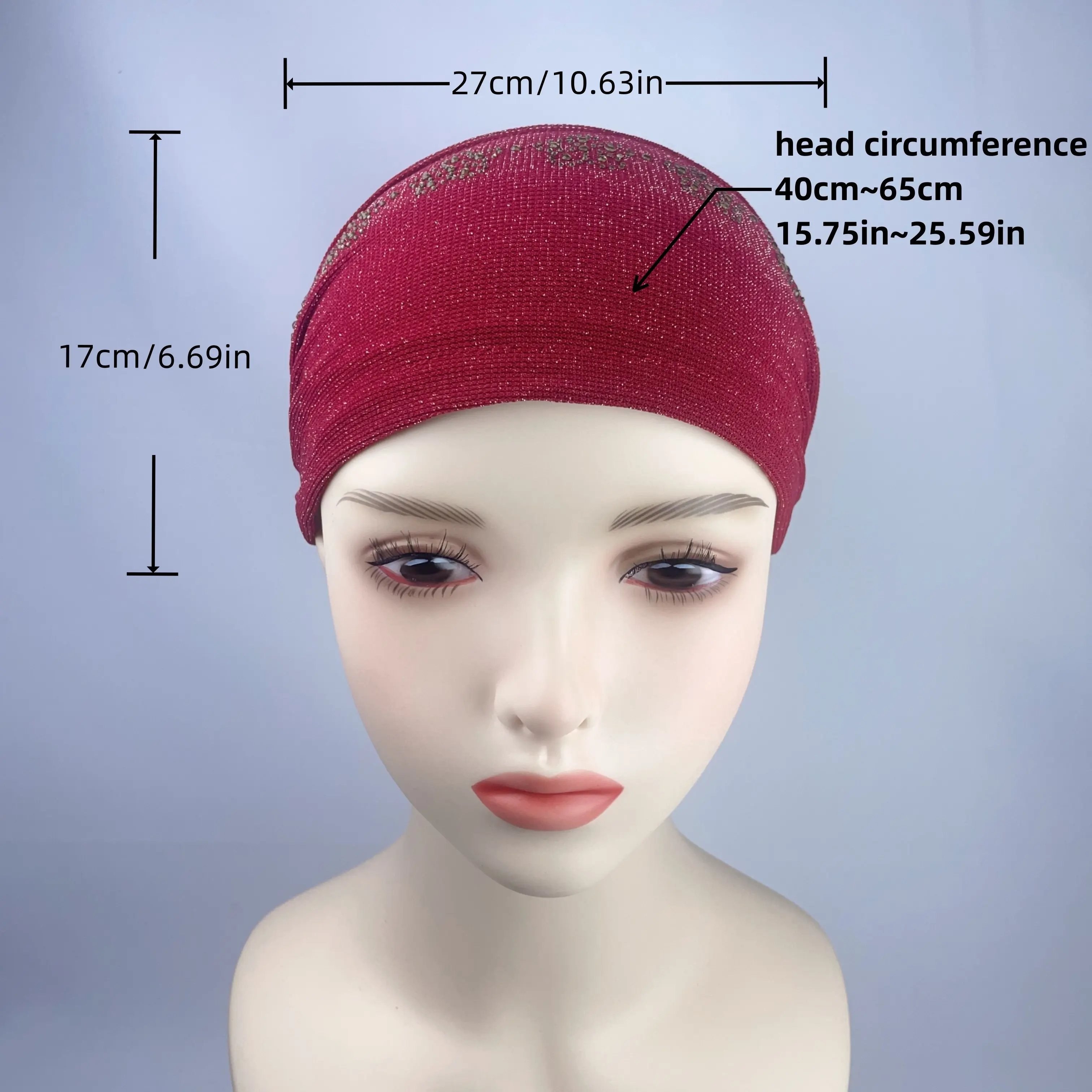 Elegant Women's Rhinestone Floral Turban - Stretchy, Soft & Breathable Head Wrap for Ramadan | Red/Black