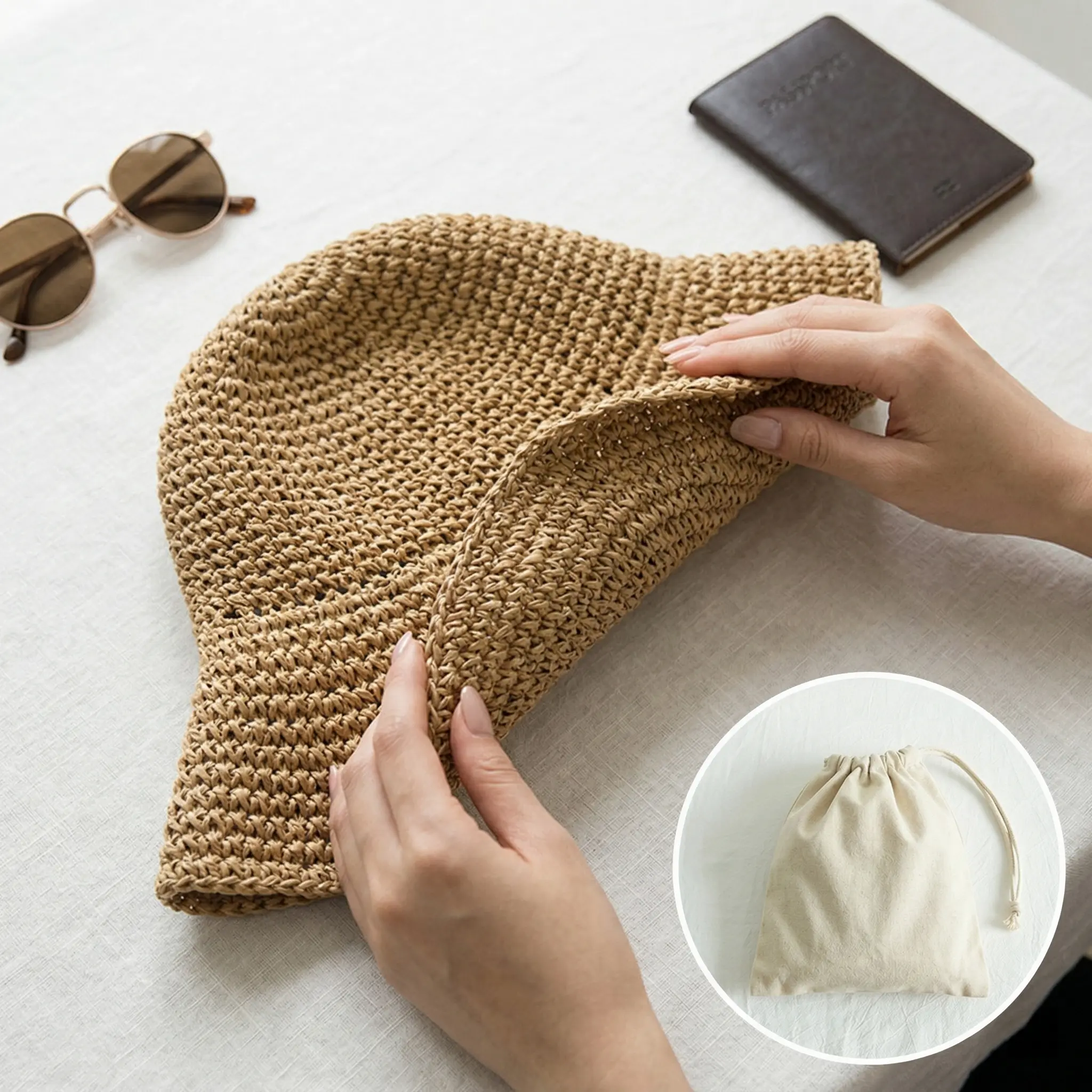 Designed for real life: it folds flat without losing shape so it slips effortlessly into your tote backpack or suitcase.No more crumpled hats or last-minute sunscreen reapplications.