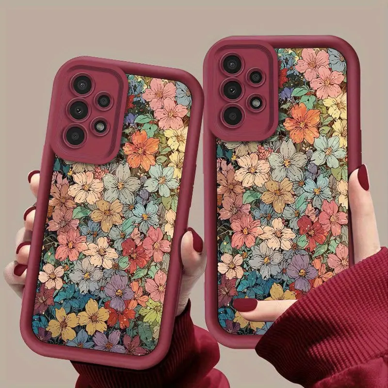 Phone Case - Full Screen Multi-Color Flowers Brown High Bamboo Anti-Fall Shock-Absorbing Protective Phone Case for Samsung Galaxy S26 S25 S24 S23 S22 S21 Fe Plus Ultra A13 A14 A15 A16 A17 A33 A34 A35 A36 A52 A53 A54 Note20