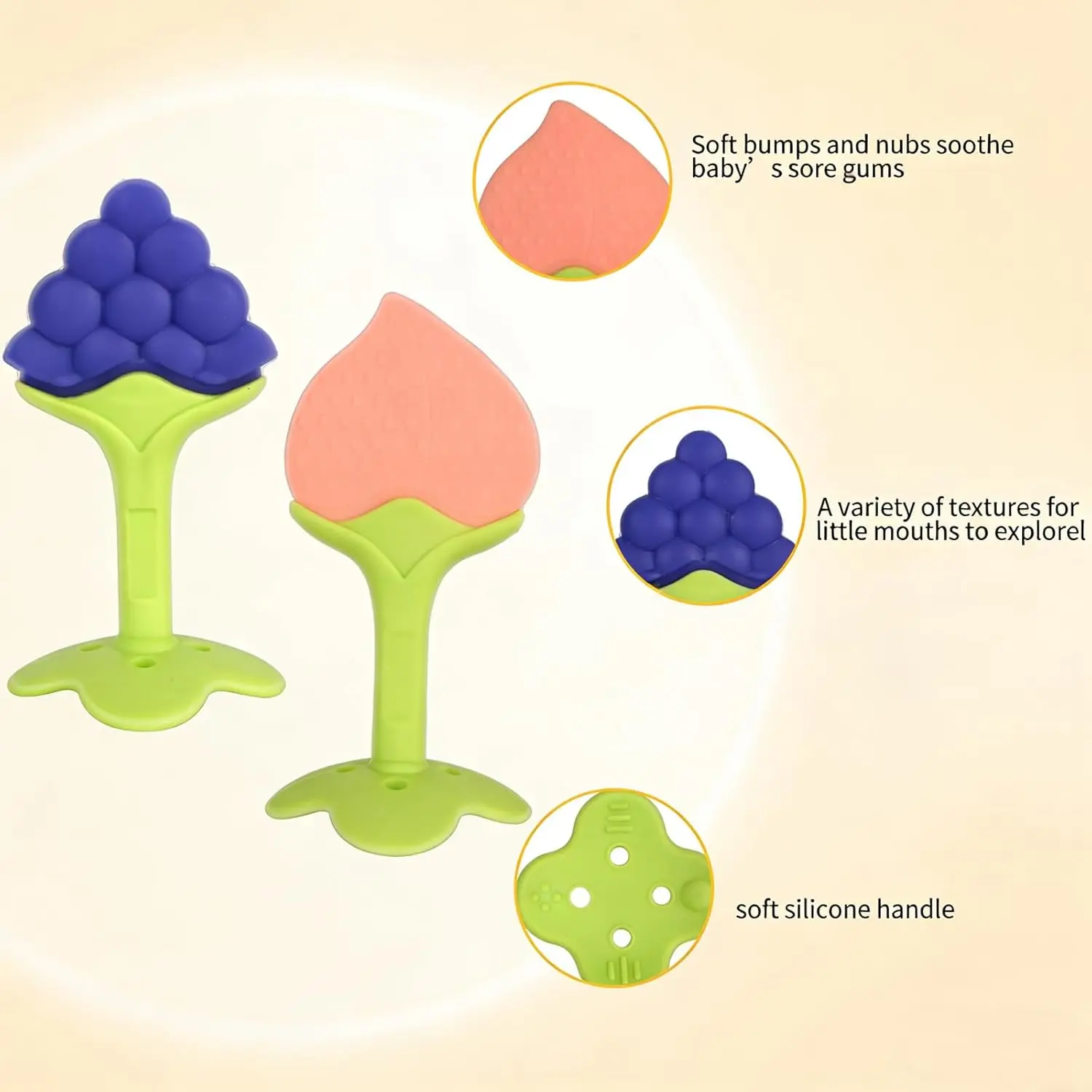 ·Function: Relieve the discomfort of baby's teething gums, will also help with sensory development and develop flexibility in their little hands.