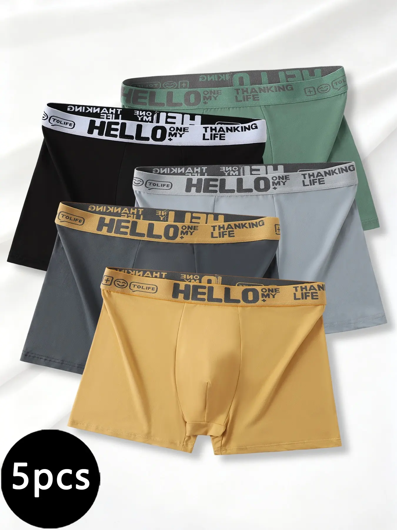 Trendy Letter Print Men's Boxer Briefs 3pcs, Comfortable Elastic Waistband, Multi-Color Options