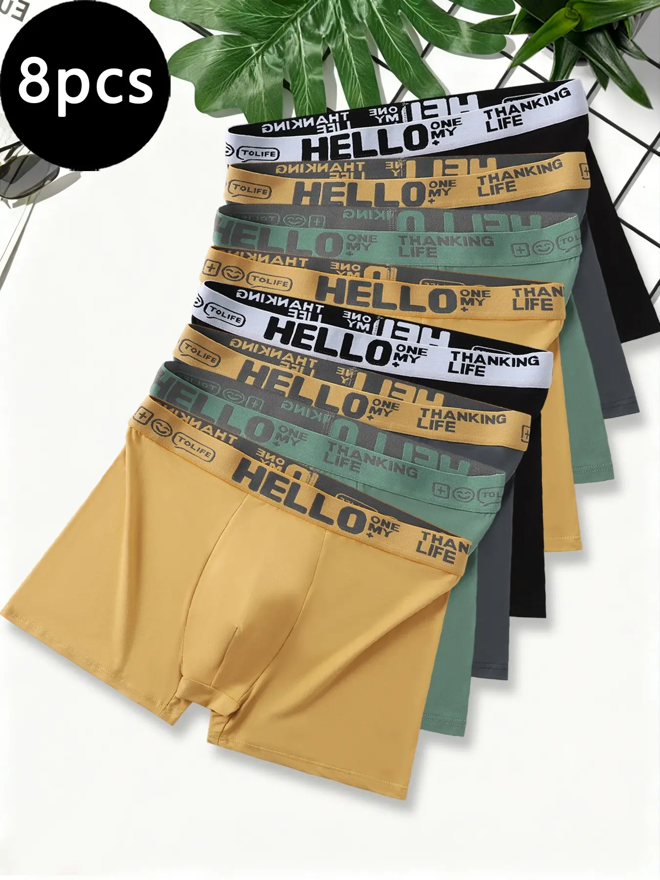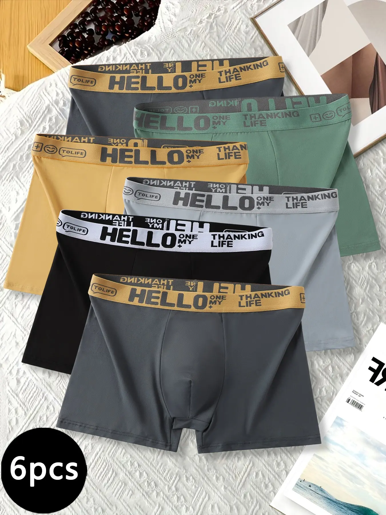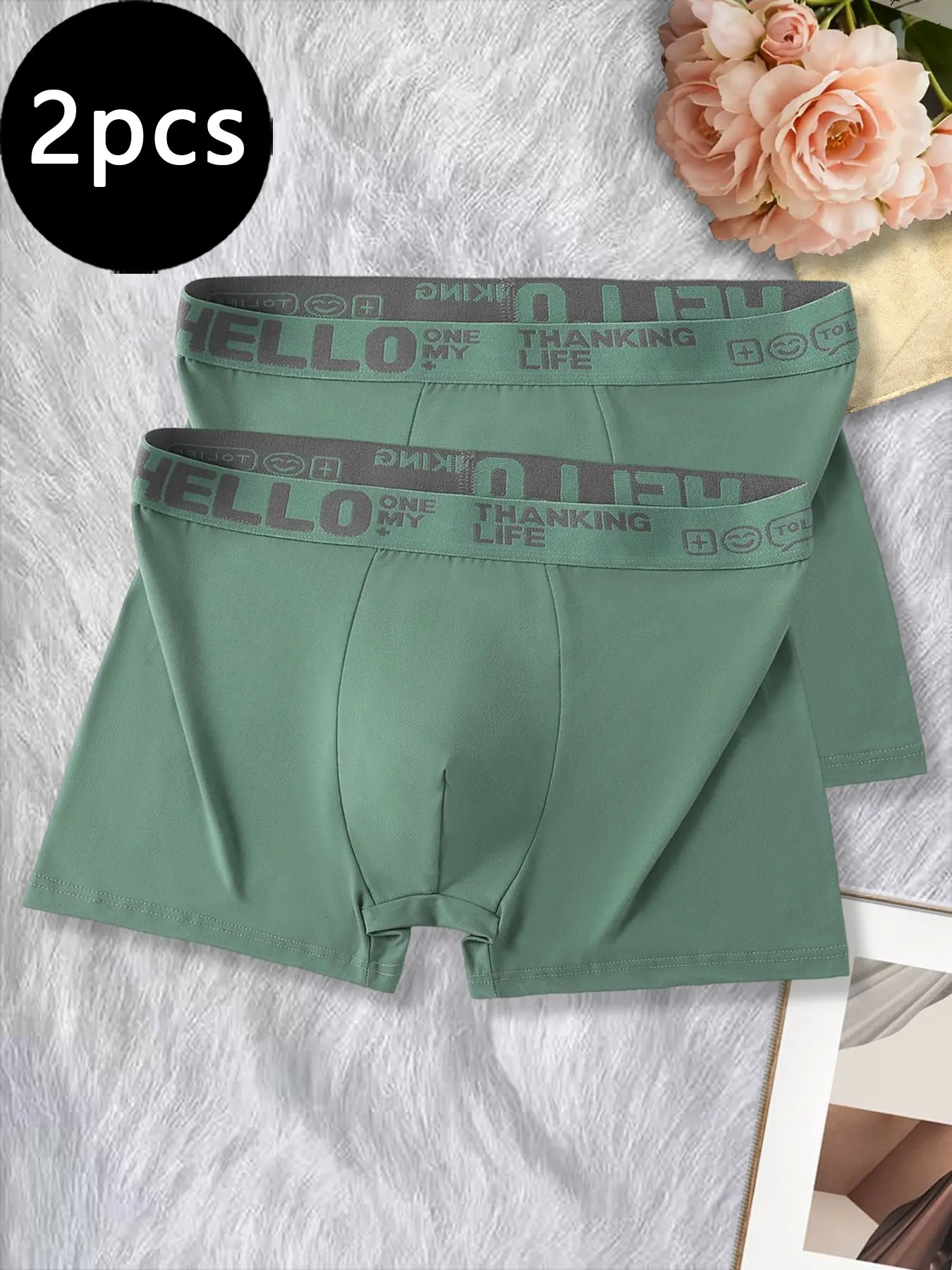 Street Style Men's Boxer Briefs, Pure Cotton Breathable Underwear, Trendy Waistband Design, Multiple Colors Available