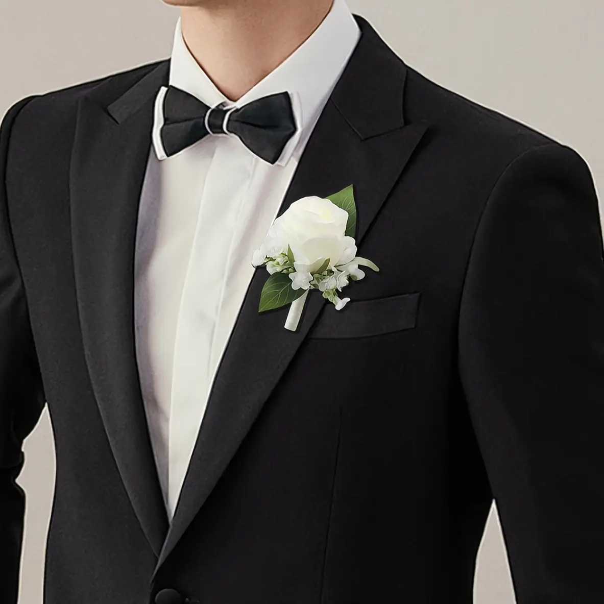 3-piece set of white rose wedding bouquets suitable for brides, elegant artificial rose boutonnieres suitable for grooms and groomsmen, wrist flowers for brides and bridesmaids, wedding decorations, wrist flowers for mothers, bridal shower hand-tossed bou